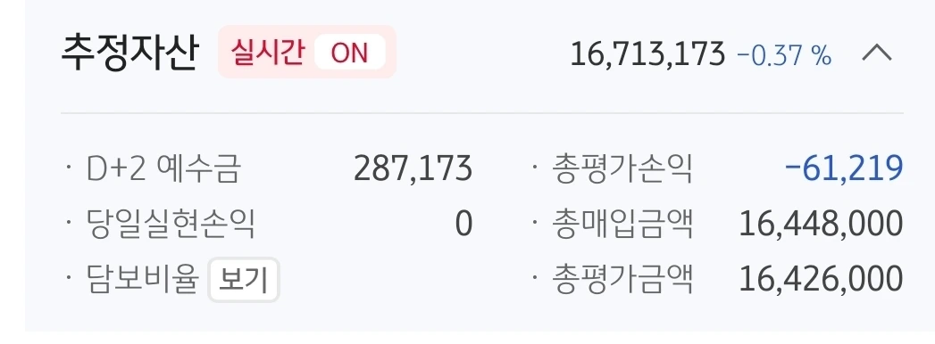 사진 1. 추정자산. 1671만 원. 329만 원 손실 중.