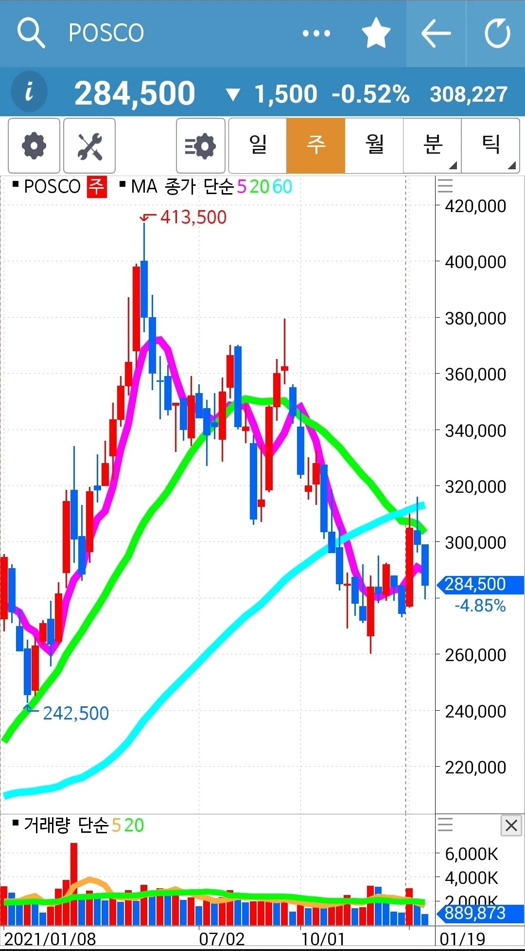 5일선이 아직 위에 있어서 아무 행동 안 했다. 손실이 크다. 그래도 할 수 없다. 나의 원칙만 지켜본다. 과연 이걸로 수익이 날지 난 그걸 테스트 중이니까. 그러면서 나의 원칙을 과연 지켜내는지 그걸 훈련 중이기도 하니까.