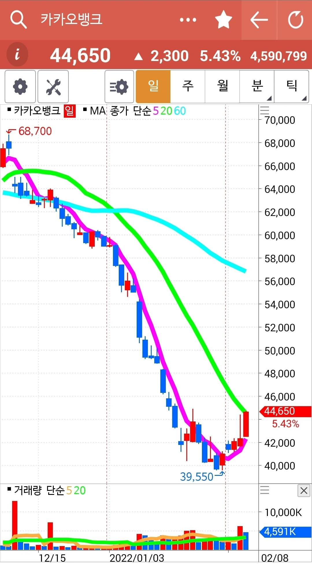 이것 역시 20일선을 향해 멋지게 올라가고 있다. 남은 돈으로 아주 조금 투자한 게 아쉽다.