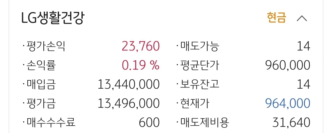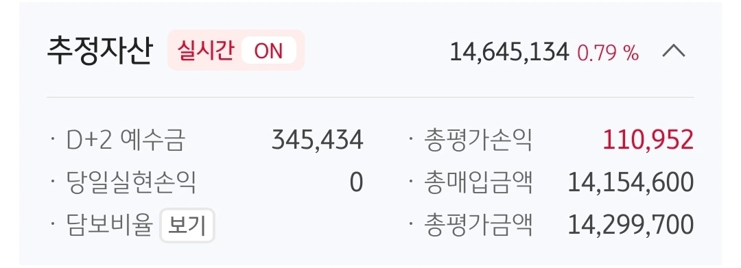 사진 1. 추정자산. 1464만 원. 536만 원 손실 중.