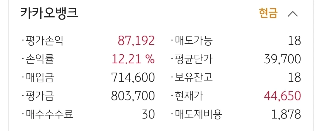 사진 3. 카카오 뱅크. 8만 원 수익중.