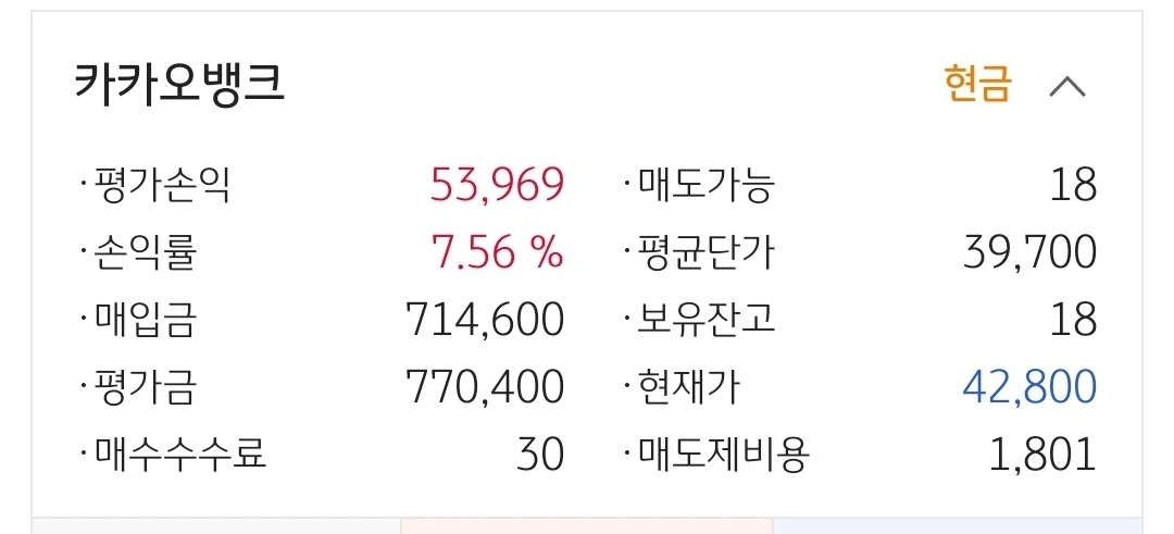 사진 3. 카카오 뱅크. 5만 원 수익중.