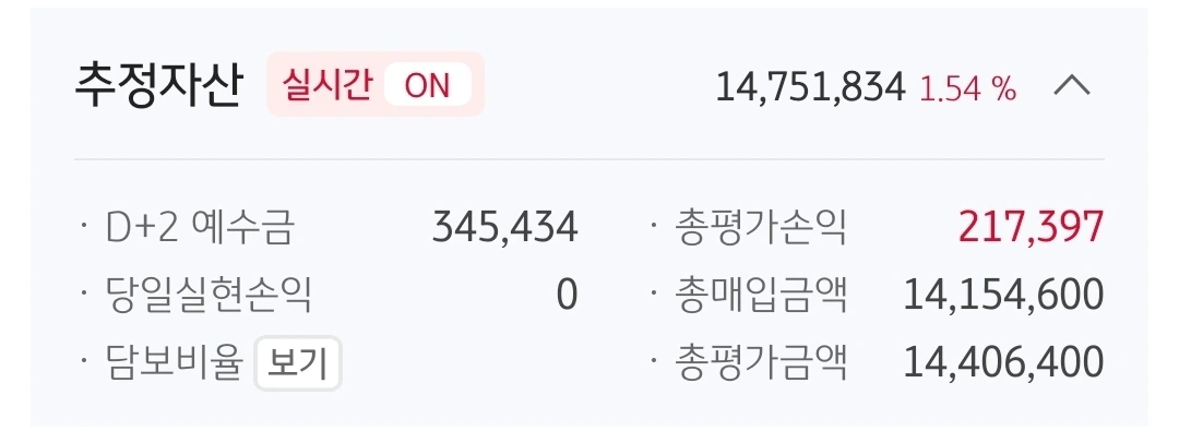 사진 1. 추정자산. 1475만 원. 525만 원 손실 중.