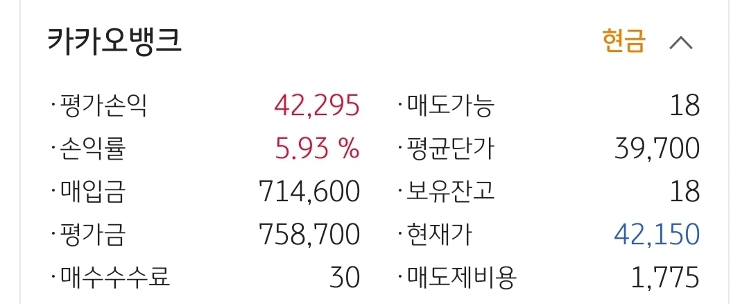 사진 2. 카카오 뱅크. 4만 원 수익중.