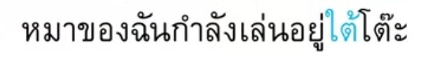 หมาของฉันกำลังเล่นอยู่ใต้โต๊ะ마컹찬깜랑렌유따이또 내 개가 테이블 아래서 놀고 있다.