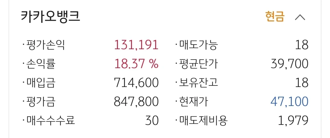 사진 2. 카카오 뱅크. 13만 원 수익중.