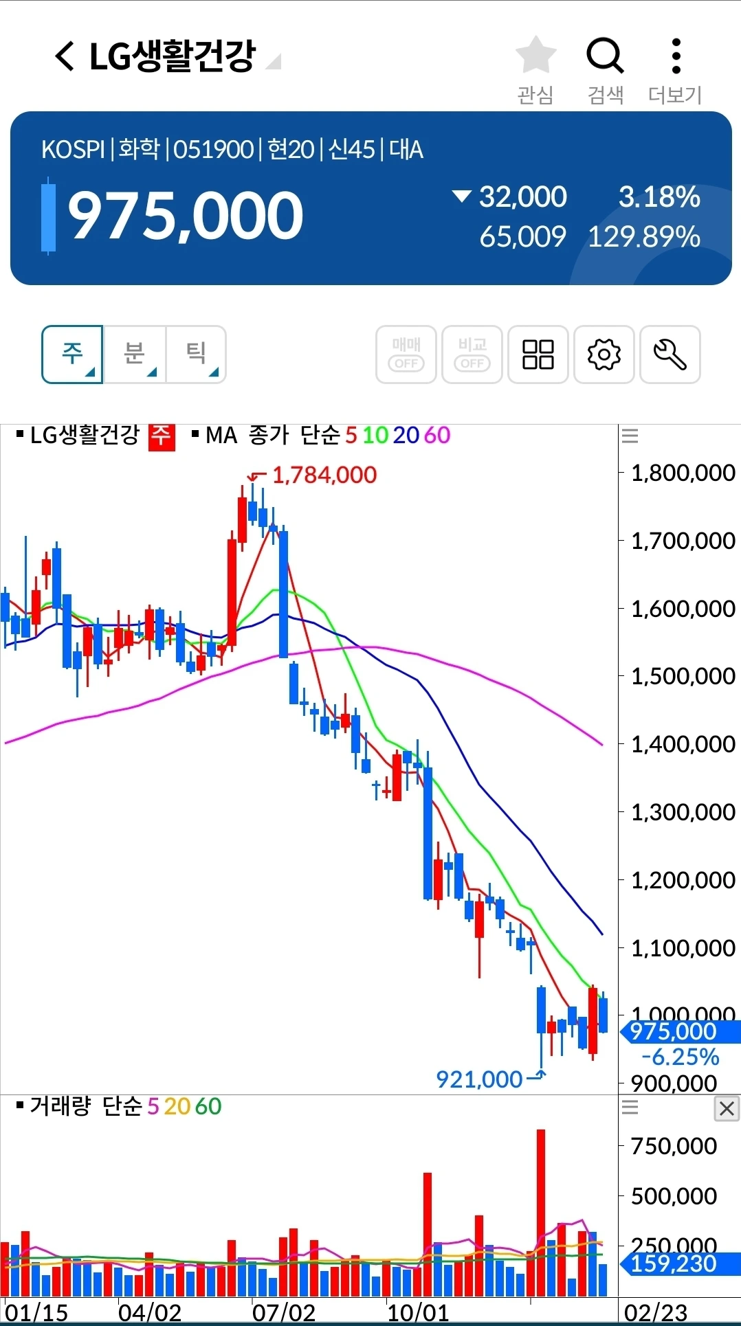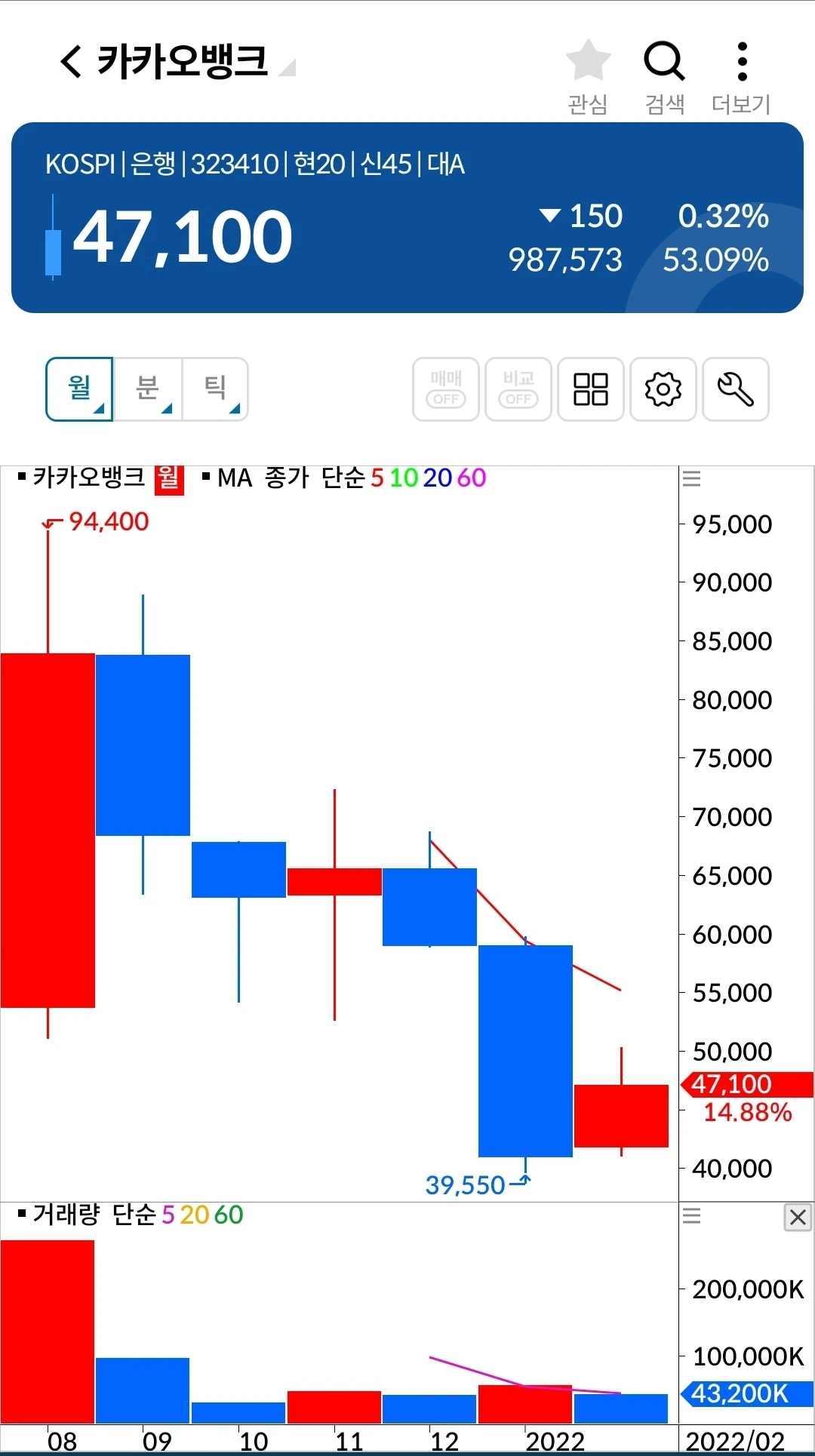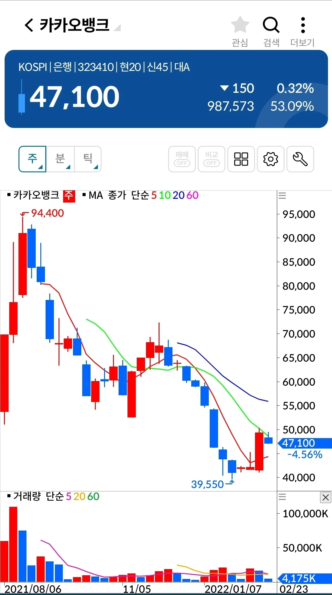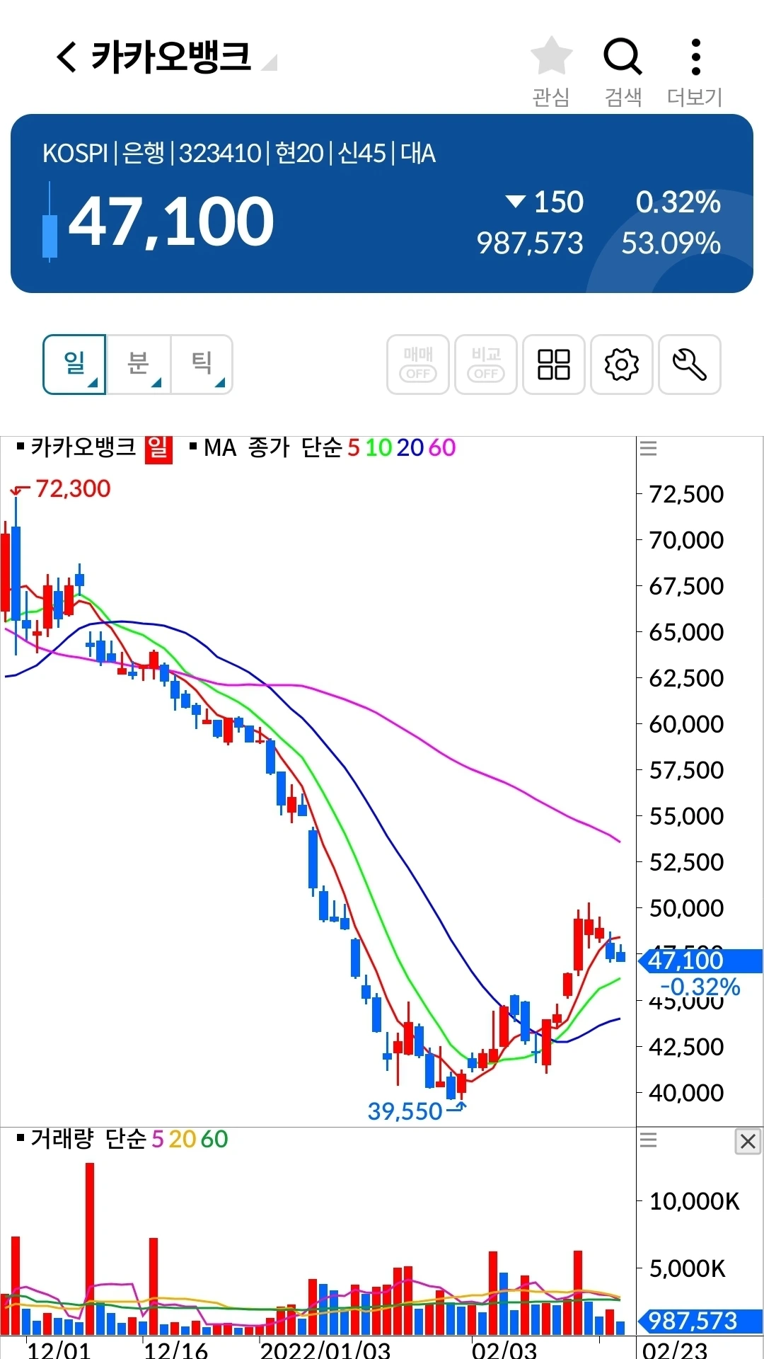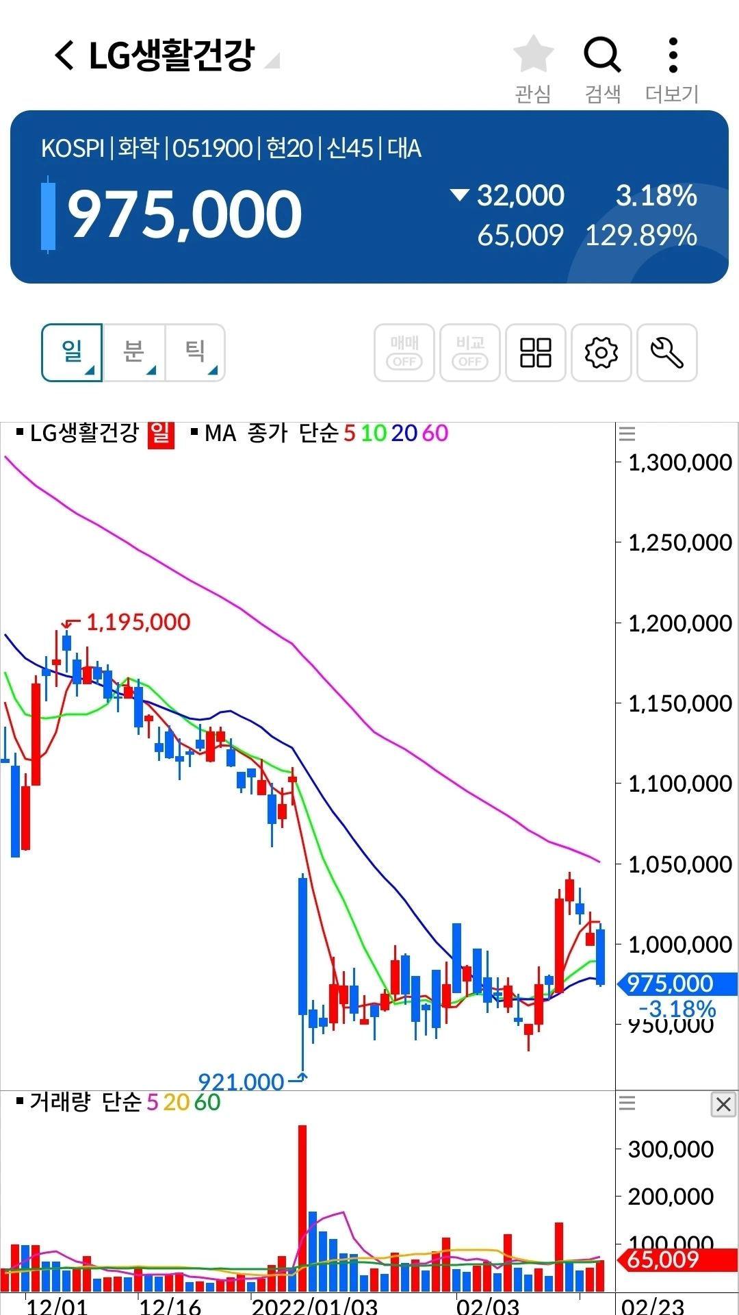 긴 양봉이 나오더니 그 긴 오름을 모두 갉아먹는 하락이 이어진다. 에고. 크게 하락했던 만큼 그 하락의 탈을 벗어내기란 영 쉽지 않을 게다. 그래도 기다려 준다. 파이팅!!!