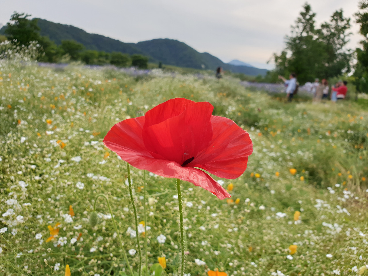 헉 양귀비! 난 왜 이렇게 양귀비만 보면 사족을 못쓸까? 낑낑 짊어지고 오던 악기들을 잠시 내려놓고 꽃에 집중한다. 아~ 그리고 보니 연주장 가는 길, 너무너무 예쁘다. 꽃이 그야말로 천지빼깔이다. 하하