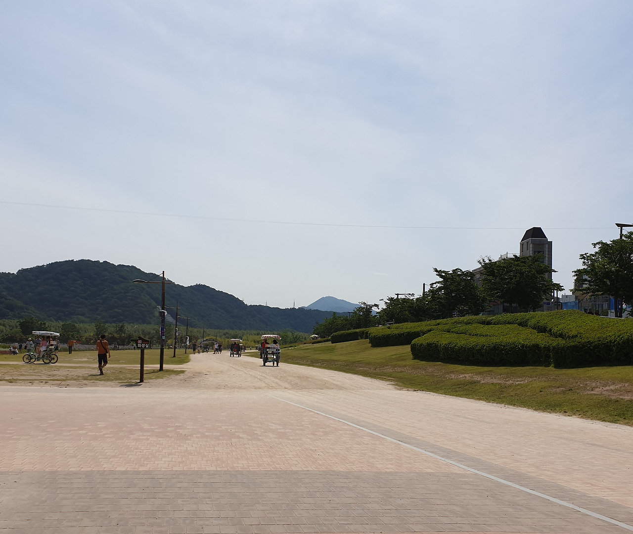 그런데 사실 거의 언제나 이렇다. 내가 짐꾼. 왜냐하면 남편은 항상 주차를 하러 아주 먼 곳까지 가야만 하기에. 매주 모여서 연습하는 곳도 차가 붐벼 입구에 나만 내려놓고 간다. 결국 내가 짐을 다 옮긴다. 그런데 오늘 공연은 공원이다 보니 사람들이 무더위에 다 몰려온 듯하다.