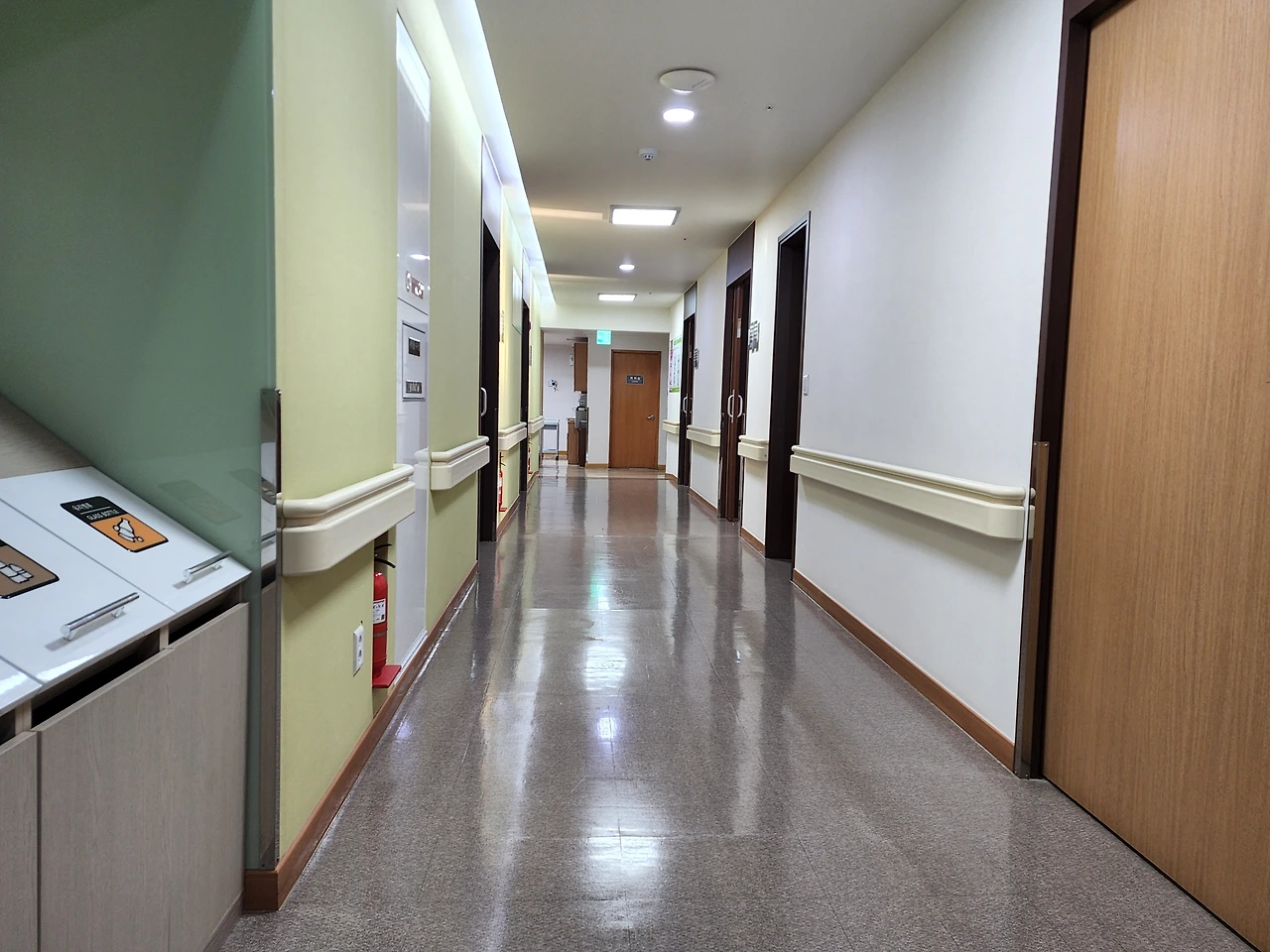 남편과 헤어져 씩씩하게 이층 입원실로 항하니 와우 여긴 완전 딴 세상. 일층의 그 많은 사람들로 북적대는 것과는 거리가 멀다. 조용하고 쾌적하고 깨끗하다. 간호사들이 반갑게 맞으며 어떻게 해야 하는지 설명해준다. 넓은 게 좋아 5인실을 택했다. 멋모르고 특실 신청했다 홀로 외로워 죽을뻔한 적 있기 때문이다. 함께 고통받은 환자들은 되도록 여러 명이 함께 할수록 좋다는 게 나의 지론이다. 하하