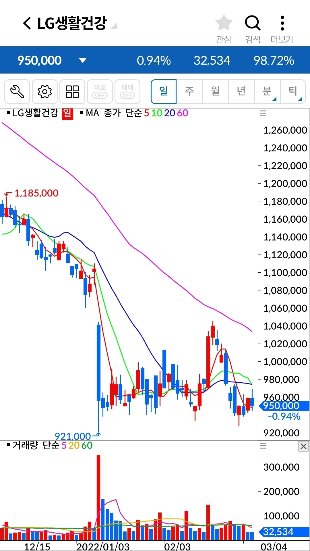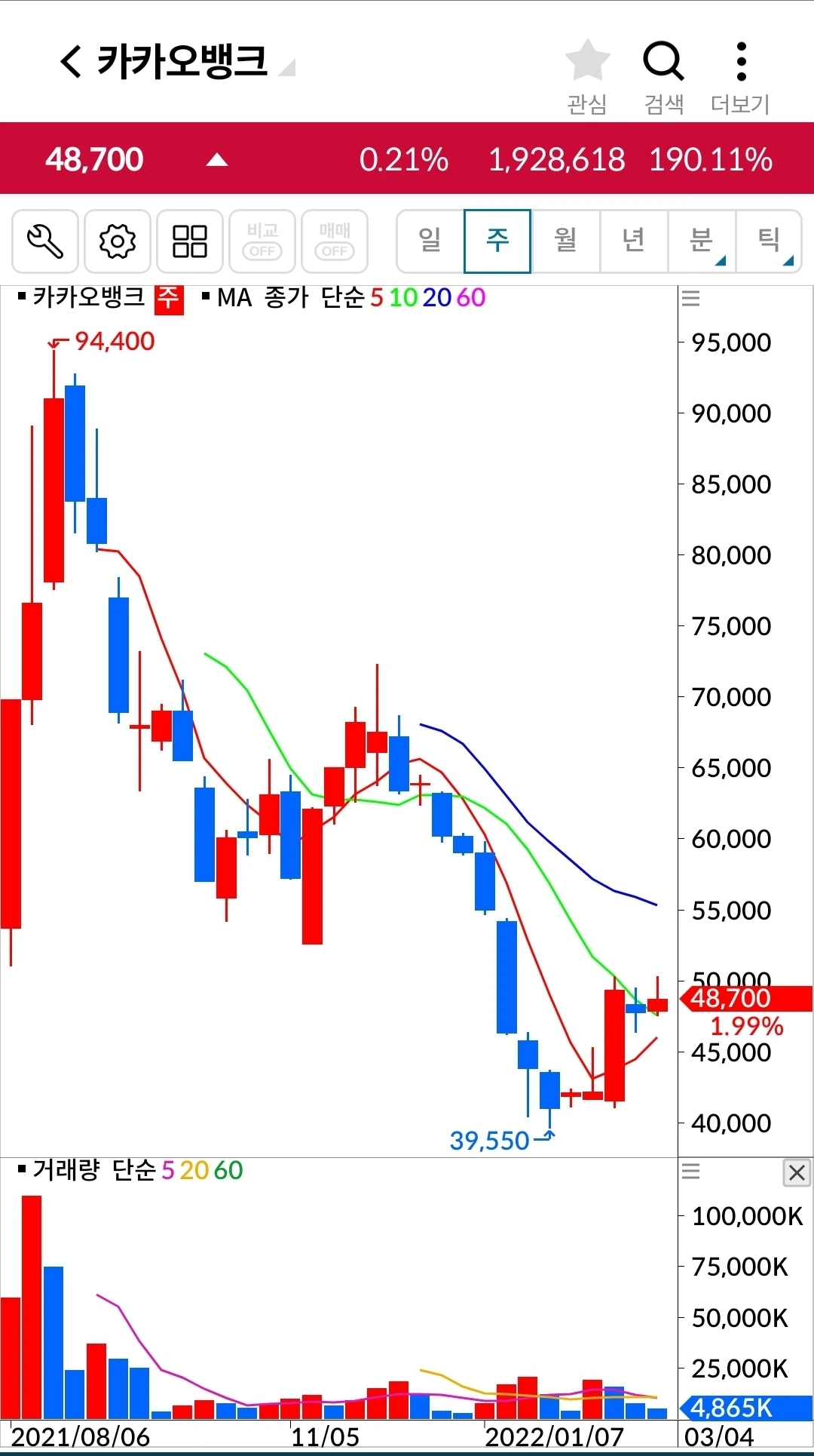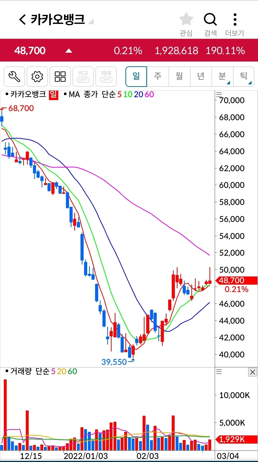 파팍 올라가도 시간이 모자랄 텐데 그렇게 여유 피우며 올라가도 되겠는가? 하하 점잖게 야단 좀 쳐보고. 그래도 난 너를 버리지 않아. 전 고점을 뚫을 때까지 마냥 가지고 있으련다. 파이팅.