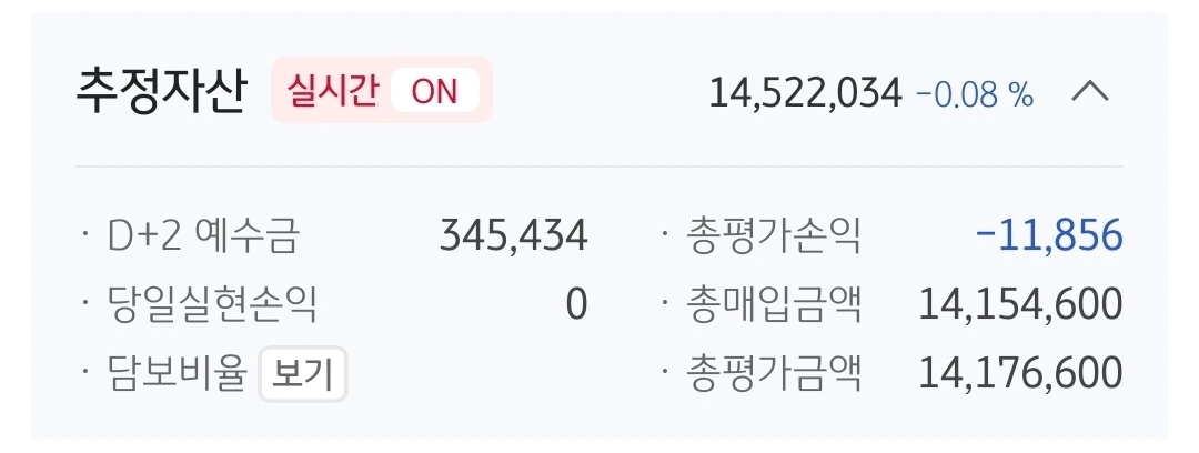 사진 1. 추정자산. 1452만 원. 548만 원 손실 중.