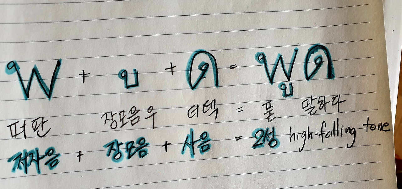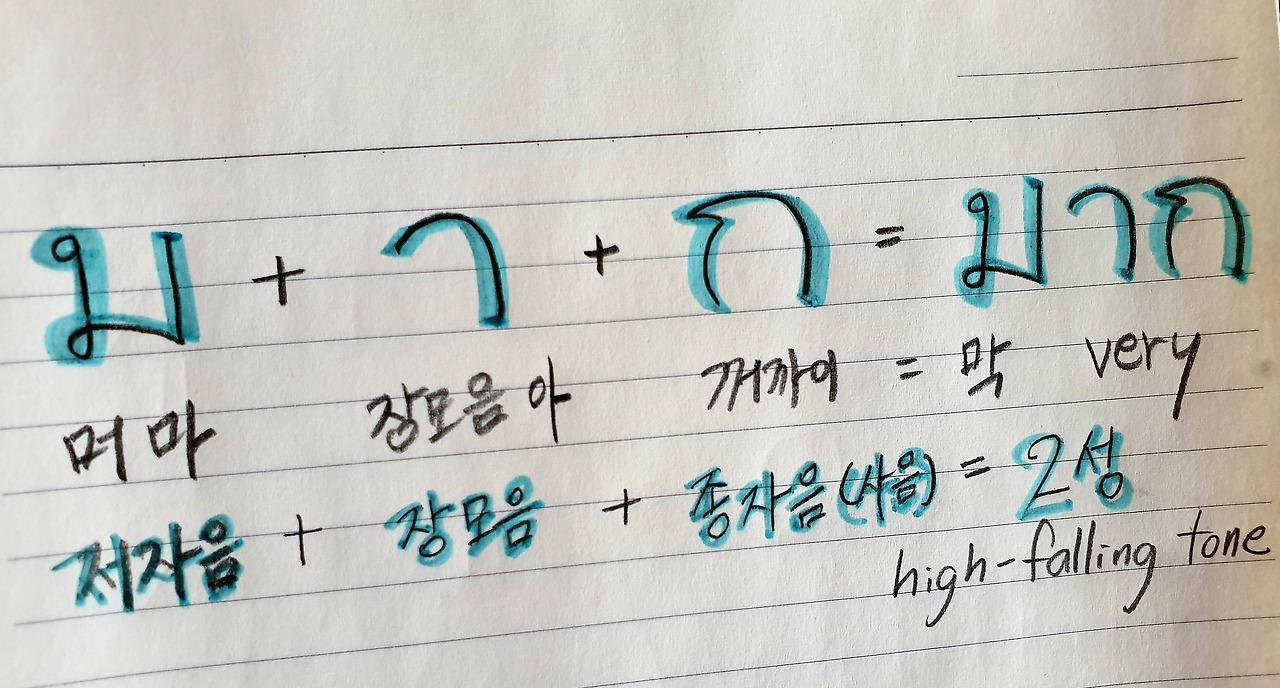 저자음 + 단모음 + 사음 = high tone 즉 3성
