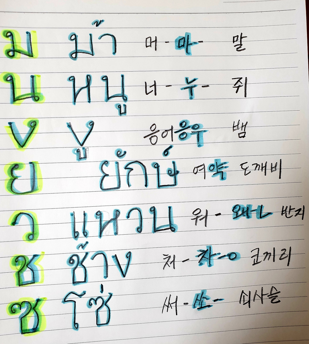 오늘은 저자음 2개 모음 2개 그리고 새 발음 법칙을 공부할 건데 그 전에 지금까지 공부한 저자음을 찾아봤다. 머마 너누 응어응우 여약 워웬 처창 써쏘를 했는데 예쁘게 정성껏 다시 써봤다. 잊지 않으려면 자꾸 써보고 읽어보고 말해보고 그 수 밖에 없다는 걸 나는 잘 아니까.
