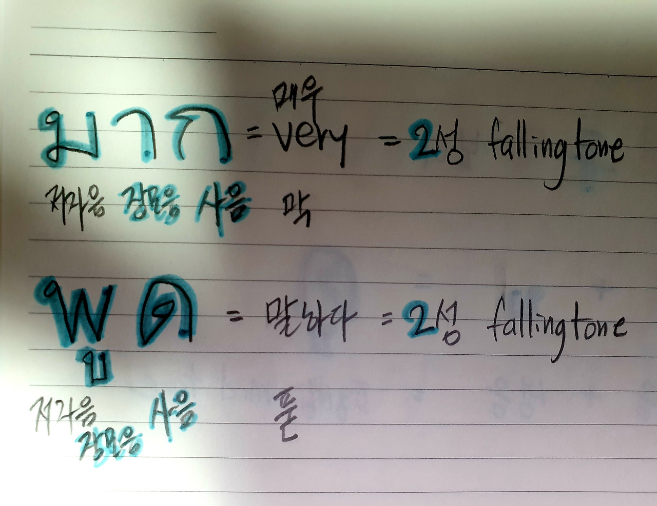 저자음 + 장모음과 사음 음절 = falling tone 즉 높은 음에서 하강하는 2성