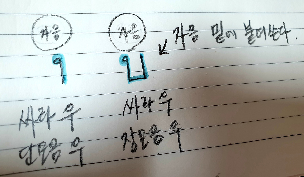 이 두개의 모음은 자음 밑에 붙여쓴다.