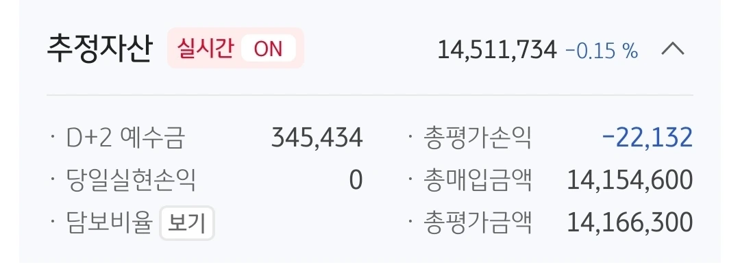사진 1. 추정자산. 1451만 원. 549만 원 손실 중.