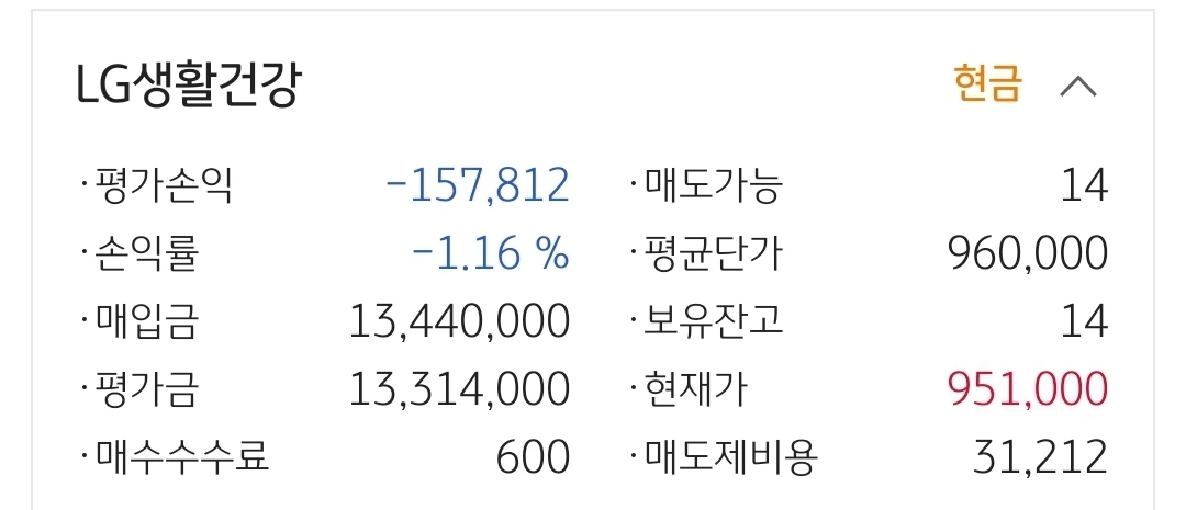 사진 3. LG생활건강. 15만 원 손실 중.