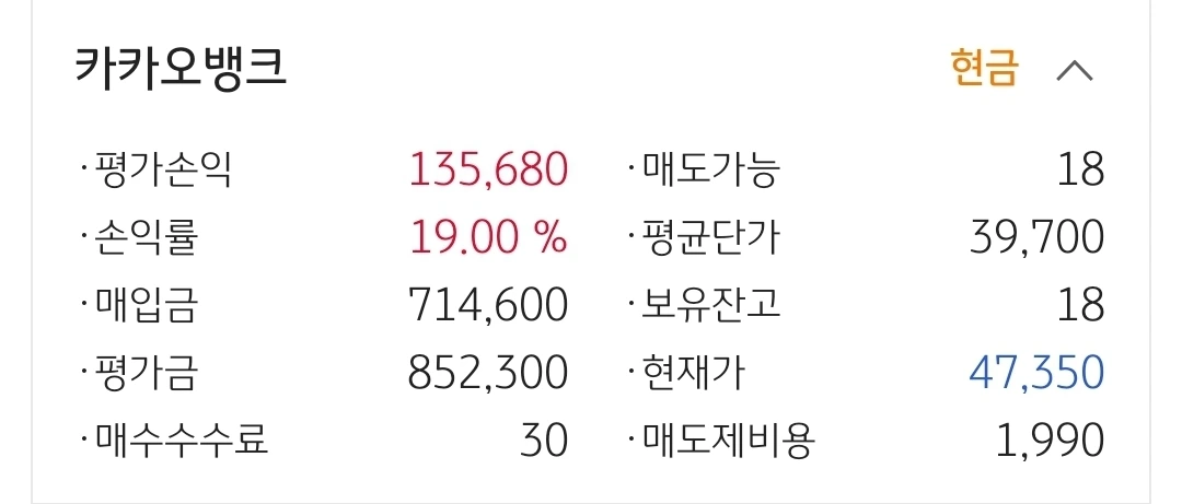 사진 2. 카카오 뱅크. 13만 원 수익중.