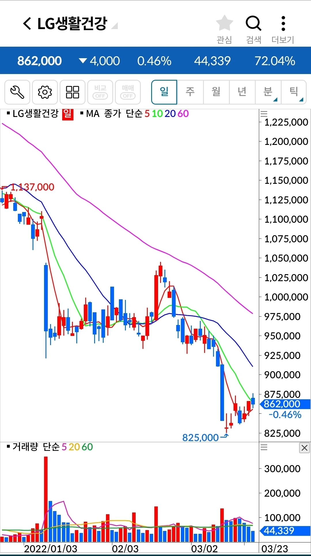 전고점 근처에서 어떻게 하는가 잘 지켜볼 일이다. 파이팅.