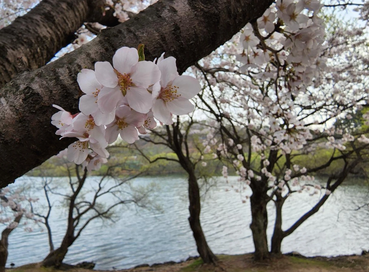 옛날 우리 국민학교엔 이런 벚나무가 아냐. 왜놈들이 심어놓은 토종 벚나무. 키가 야트막하고 통통하며 아주 꽃이 수북하지. 엄마는 하늘로 쭉쭉 뻗은 키가 큰 벚나무들을 보며 보며 옛날 옛날 아주 옛날이야기를 들려주신다. 90세 울 엄마가 초등학교 다닐 때니 거의 80여 년 전 일제강점기 이야기다. 학교에 벚나무가 무척 많았단다. 거기 새까만 버찌가 열렸지. 그게 얼마나 맛있었는지 몰라. 그런데 그걸 못 먹게 했단다. 아니 왜? 몰라 그걸 다 어디로 가져가는지 못 먹게 했어. 나쁜 놈들! 하하 나의 추임새가 멋지다. 학교 가는 길목에 무덤이 있었어. 사람은 별로 없지. 얼마나 무서웠는지 몰라. 낮인데도? 그럼 낮이어도 사람이 너무 없으니까 정말 무서웠지. 함께 다니던 언니가 졸업하고는 혼자 다녀야 했거든. 그게 얼마나 무서웠는지 지금도 오싹 기억이 난다에서부터 왜놈들이 얼마나 못되게 굴었는지를 말씀해주셨다. 절대 한국말을 못쓰게 하고 어쩌다 한국말하면 선생님께 무섭게 혼나고 매일 아침이면 신사 참배라고 절하고 손뼉 치고 아주 우릴 세뇌 교육시켰지. 나쁜 놈들! 나는 추임새로 엄마보다 더 강하게 그놈들을 욕한다. 함께 그때 그 못됐던 왜놈들을 신나게 욕하고 나니 속이 다 후련하신가 보다. 하하 서울엔 아직인데 이곳엔 벚꽃이 그야말로 활짝이구나. 벚꽃의 아름다움에 빠지신다. 걷다 보면 더웠고 앉아서 쉬다 보면 추웠다. 도톰한 잠바를 벗었다 입었다 하며 거의 두 시간을 걸었다. 나와 손을 꼭 잡고 즐겁게 이야기하며 잘 걸으시길래 조금씩 쉬어가며 우리 집 앞 수변공원의 벚꽃을 맘껏 감상하고 왔는데 하하 무리였나 보다. 집에 오자마자 그대로 침대에 뻗으셨다. 내가 어쩌자고 그 먼 길을 걸었을까. 아이고 큰일 났다 하시면서도 마지막 말씀은 한결같다. 그래도 벚꽃은 정말 예뻤다. 하하