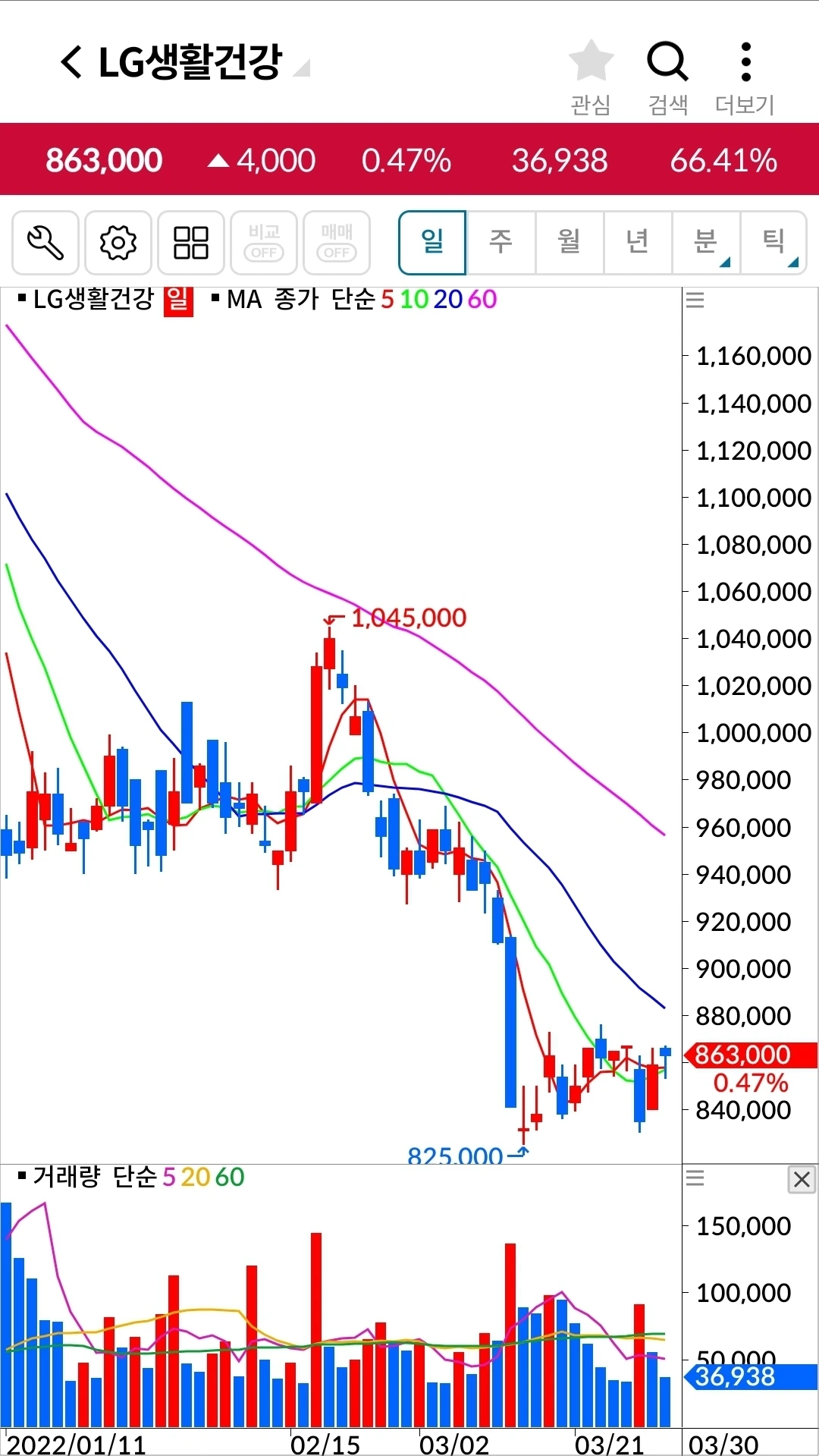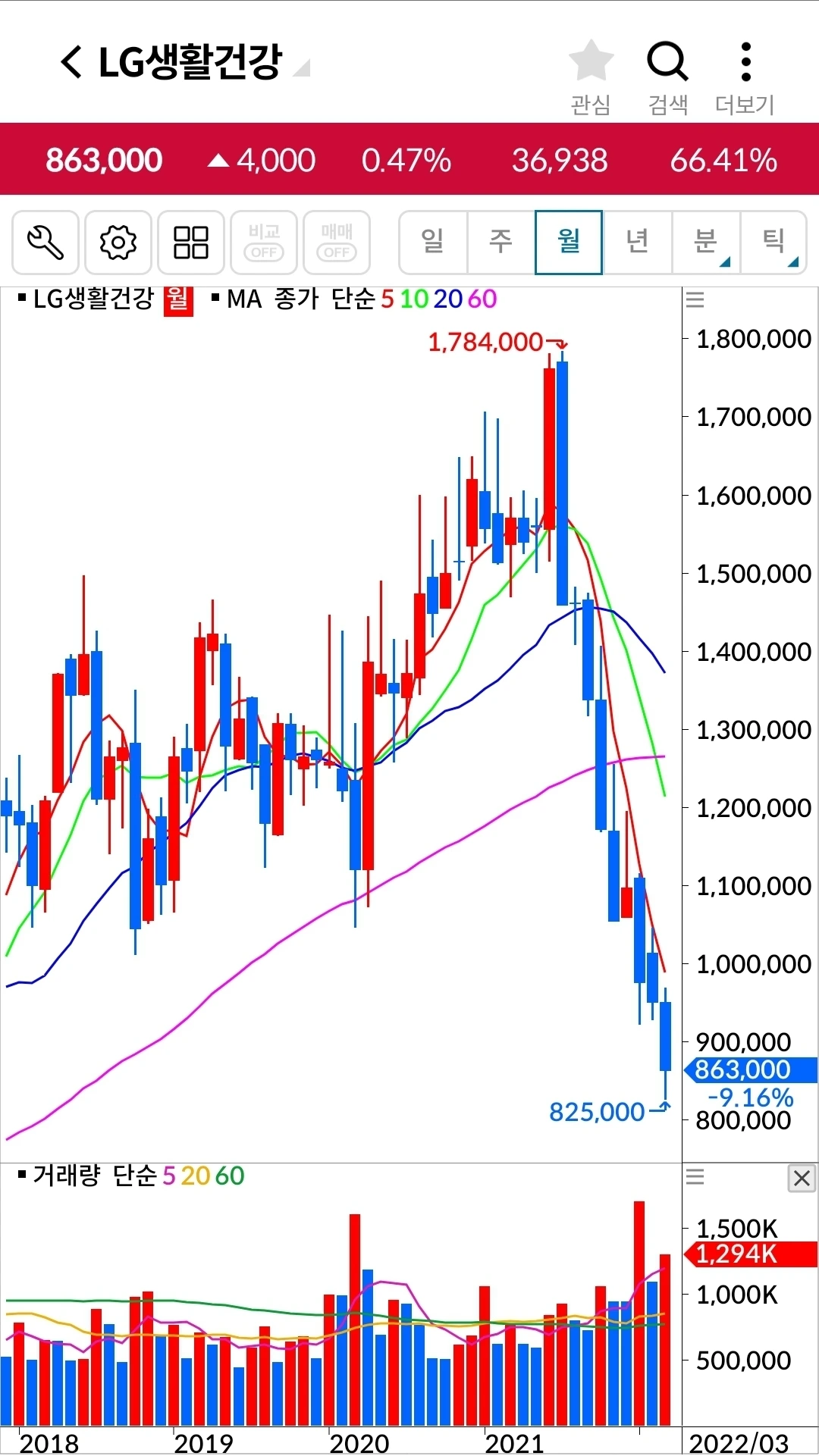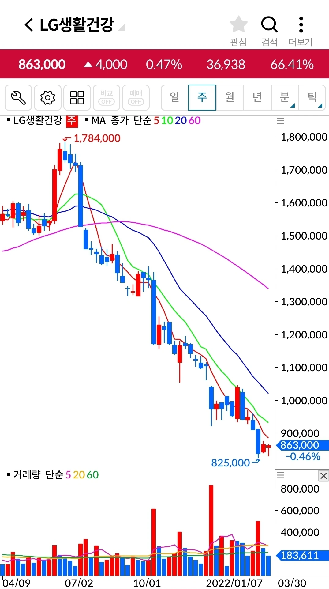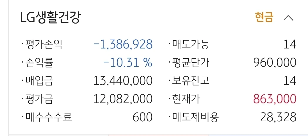LG생활건강. 138만 원 손실 중.