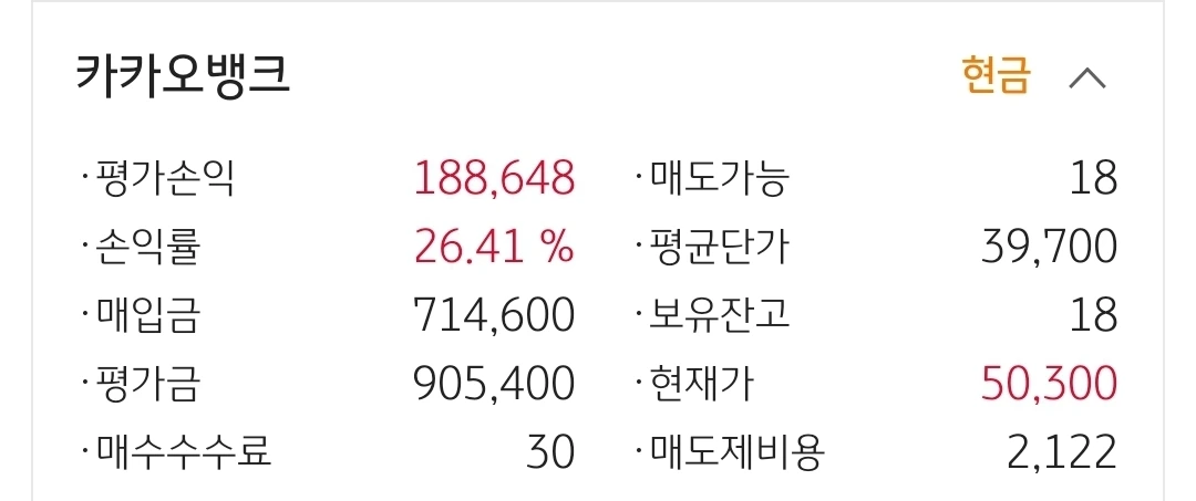 카카오 뱅크. 18만 원 수익중.