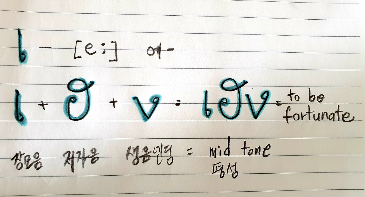 모음 에 + 저자음 허녹훅+ 저자음 응어응우 = 미드톤