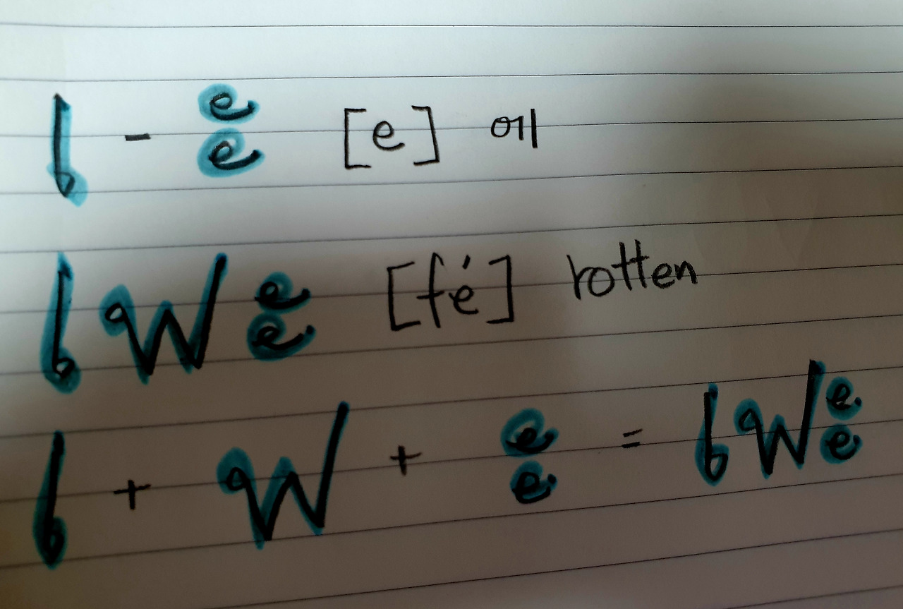 에의 뒤에 있는 모음 아에 자음이 따라오면 다르게 쓴다.