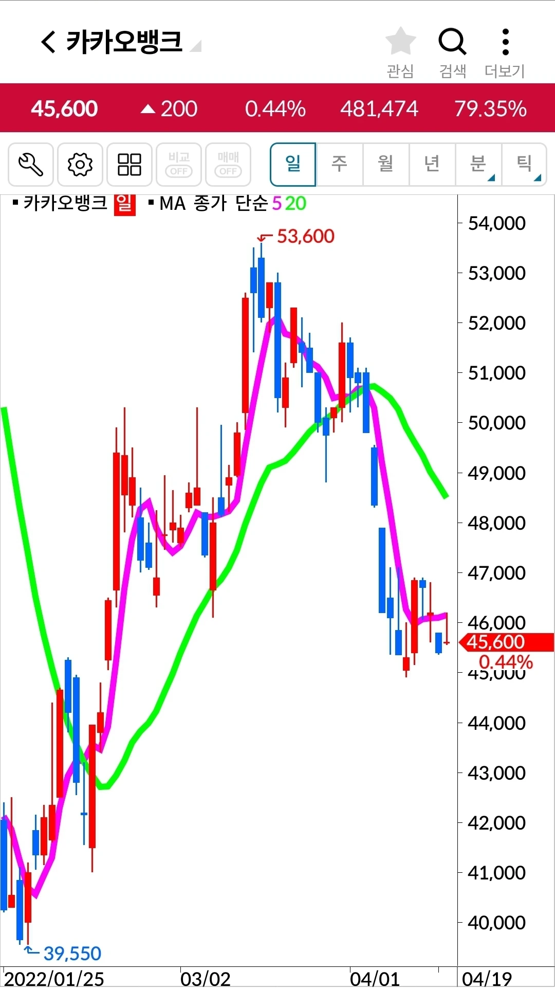 전일 고점을 못 뚫고 음봉이라. 그래도 아주 작은 음봉이니 오늘의 상승을 기대해보자. 파이팅.