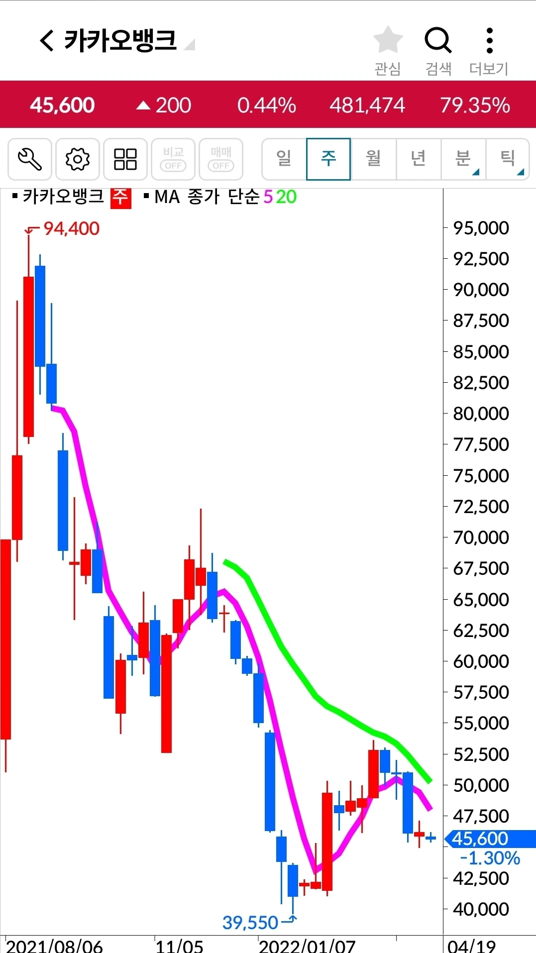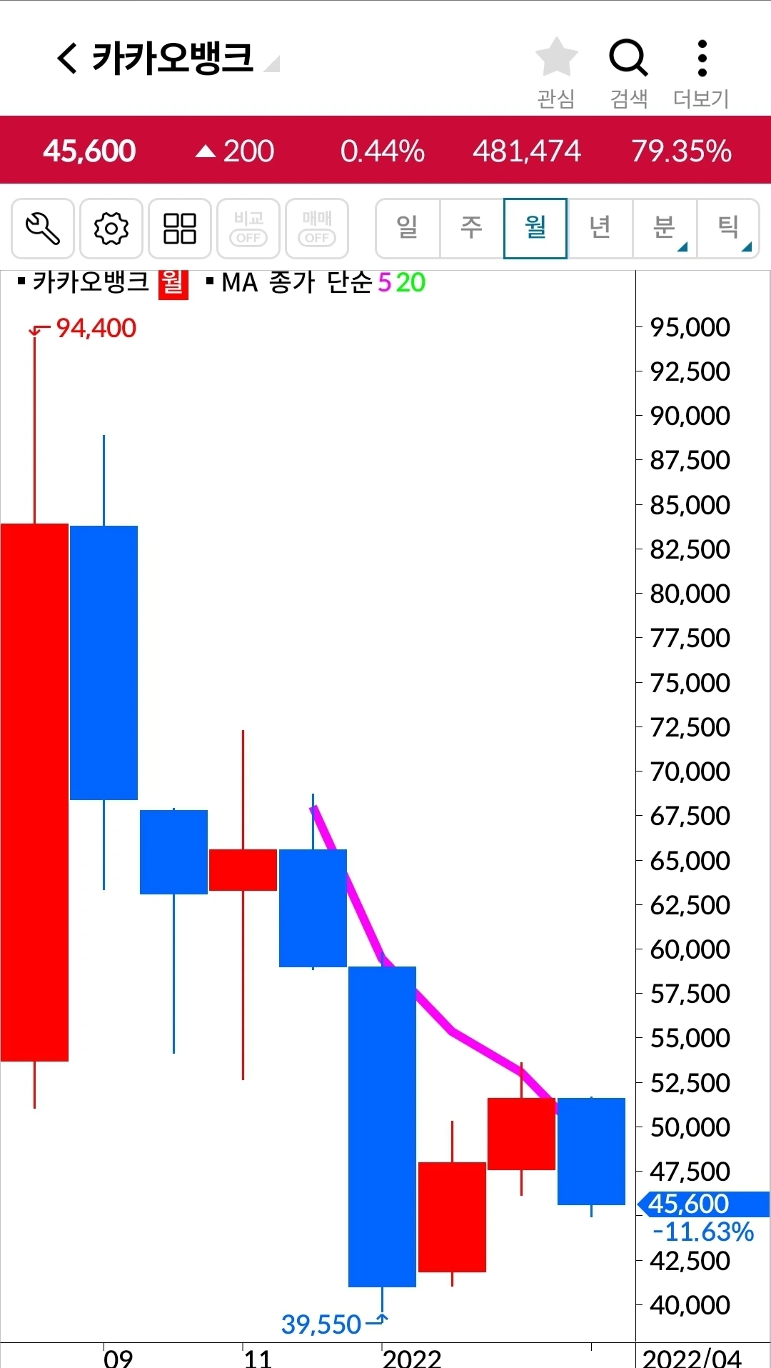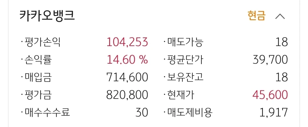 카카오 뱅크. 10만 원 수익중.