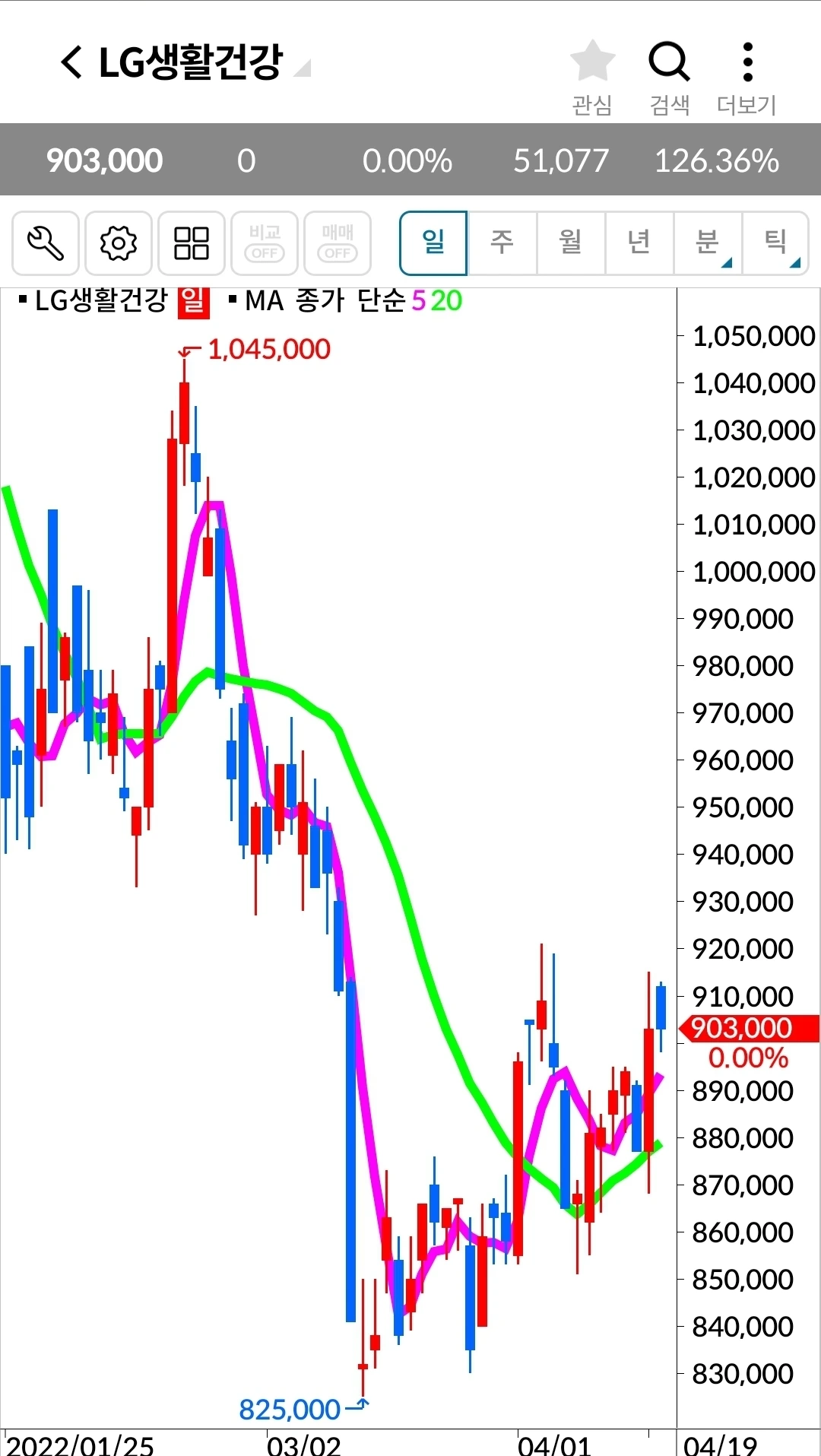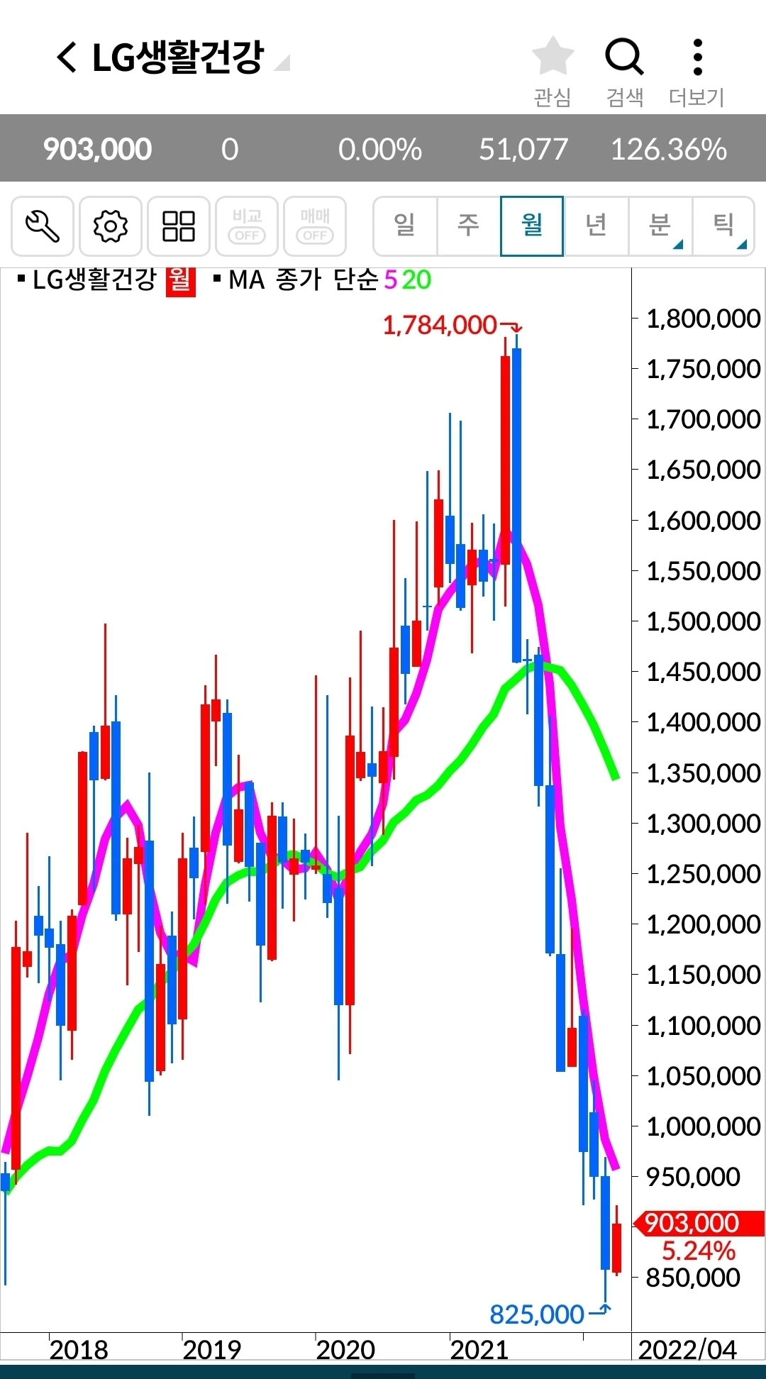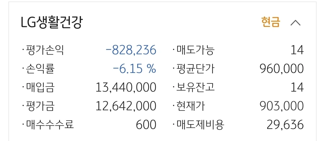 LG생활건강. 82만 원 손실 중.