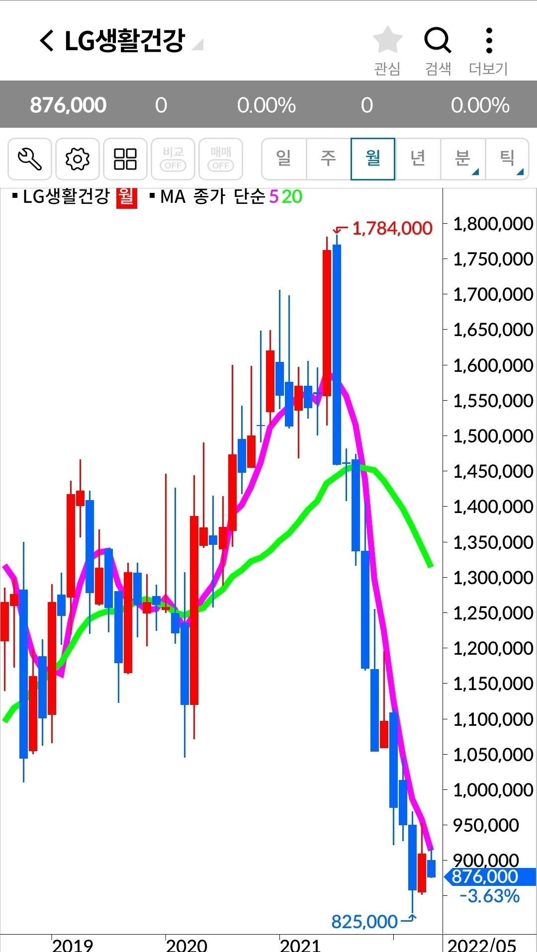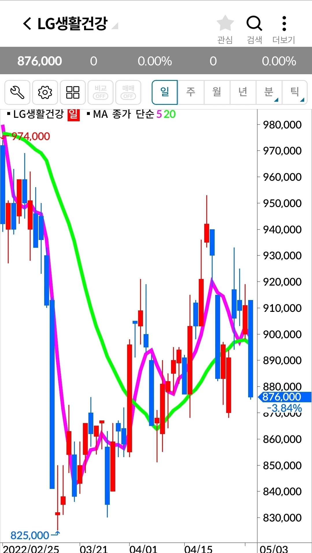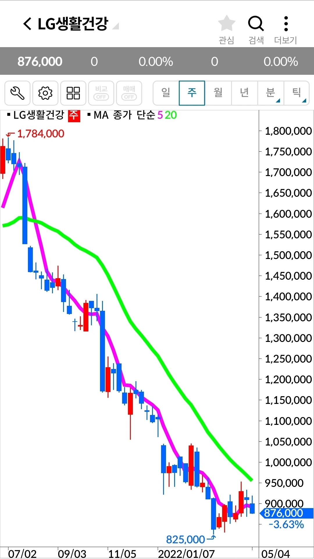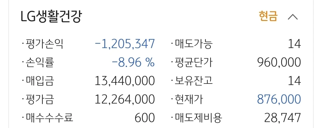 LG생활건강. 120만 원 손실 중.