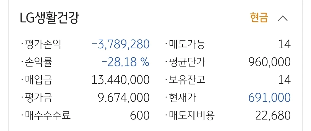 LG생활건강. 378만 원 손실 중.