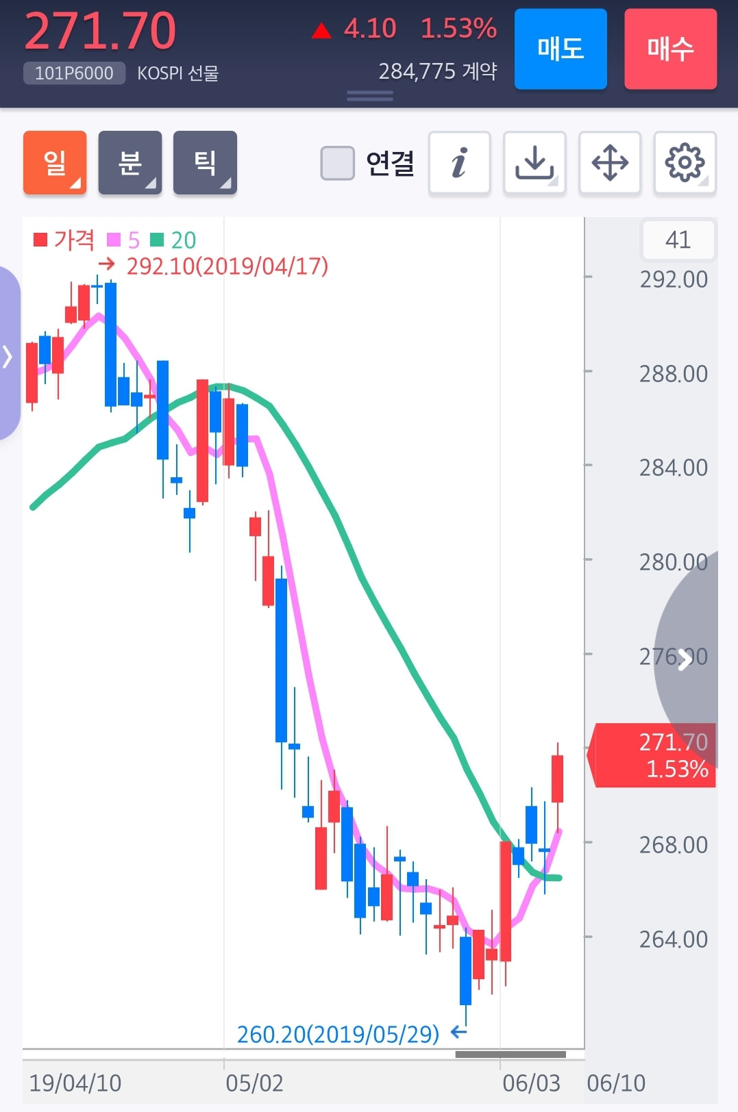 그런데 오늘 종가는 271.70 와우 무려 2포인트가 훌쩍 올랐다. 그래서 50만 원 수익이 났다. 그러나 얼마 수익나고 여부는 중요하지 않다. 눈을 돌릴 필요조차 없다. 이제 내가 할 일이란 5일선이 꽝! 20일선과 충돌하여 아래로 곤두박질치는 날 매도하는 것뿐이다. 그때까지 난 아무것도 모른다. 예측 않고 기다릴 뿐이다. 파이팅!!!