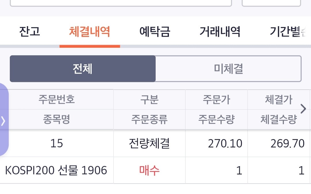 아침에 동시호가로 넉넉히 위로 올려 주문했다. 체결 가는 269.70