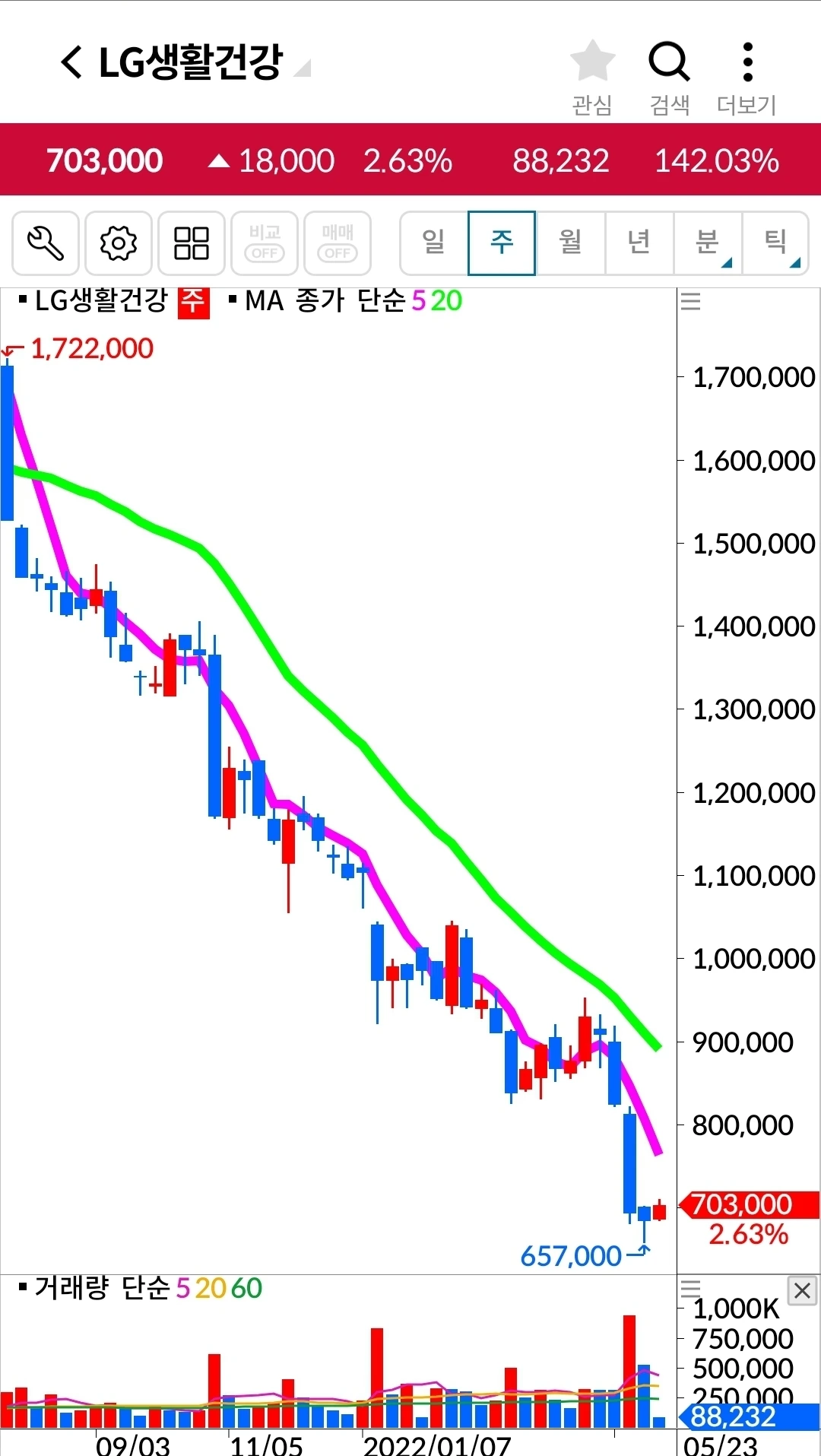 5일선이 20일선을 뚫으려 하고 있다. 기다려보자. 이 또한 파이팅!