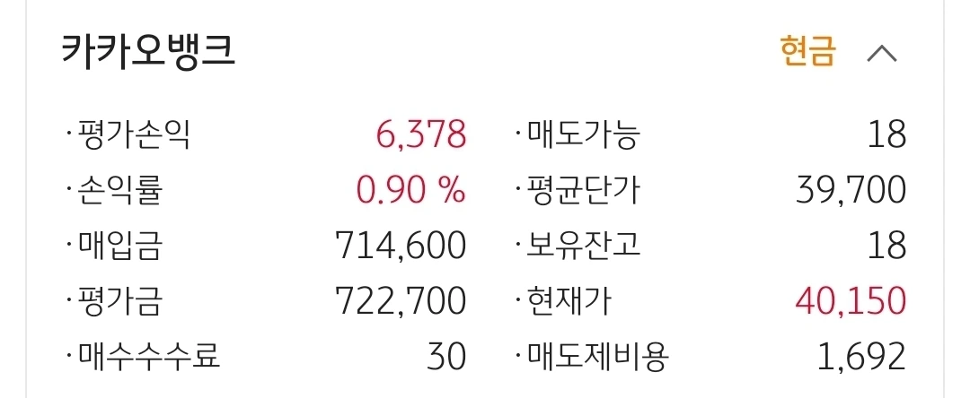 카카오 뱅크. 6천 원 수익 중.