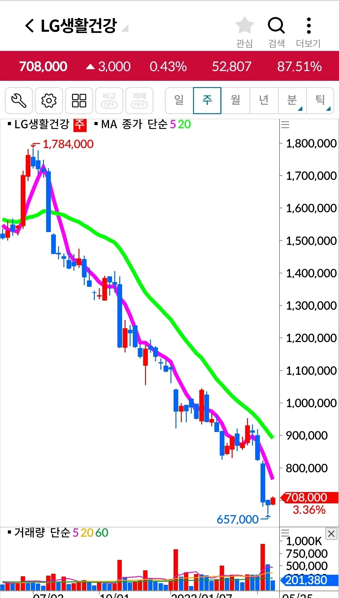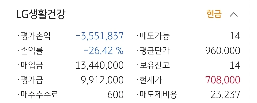 LG생활건강. 355만 원 손실 중.