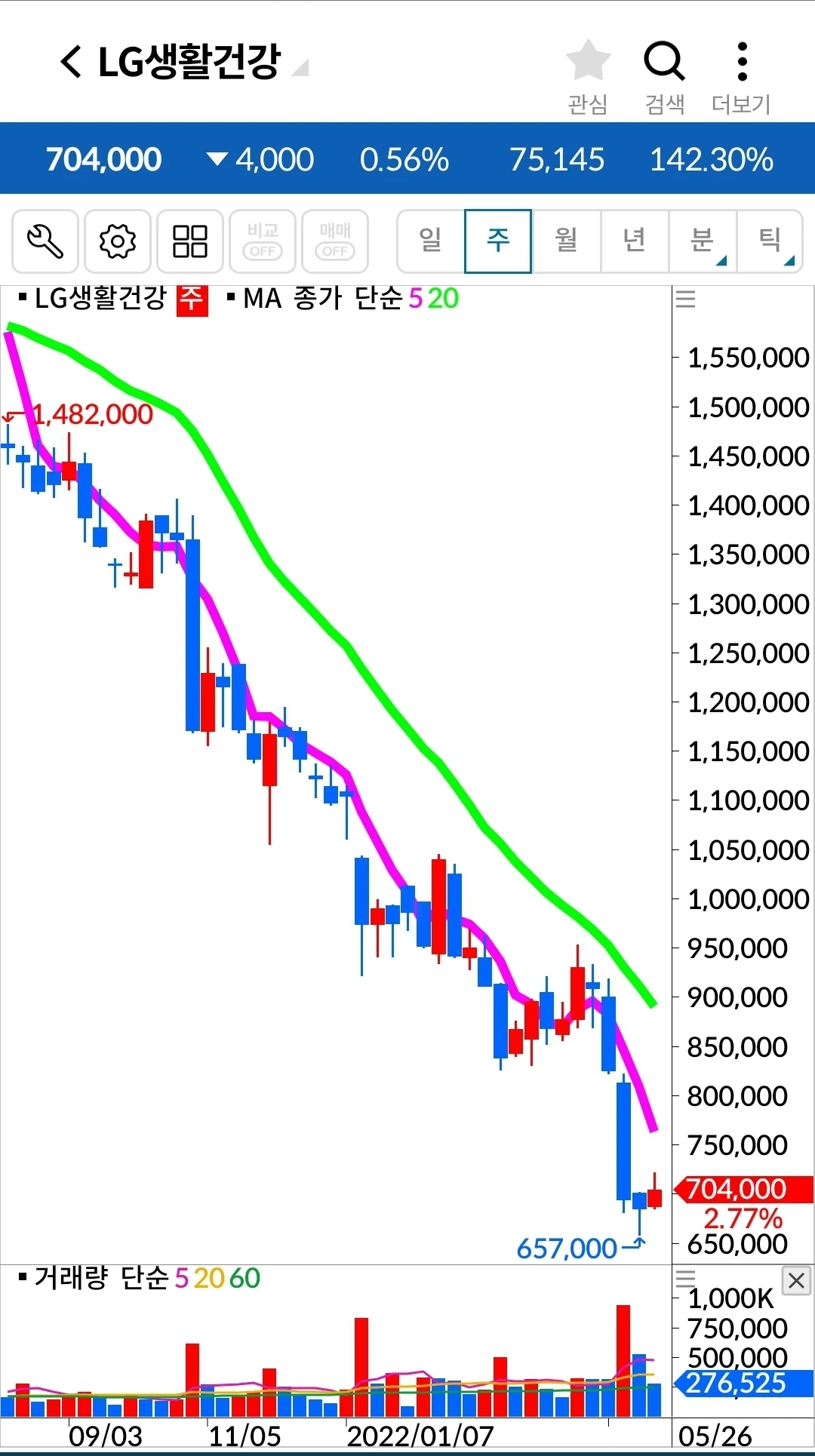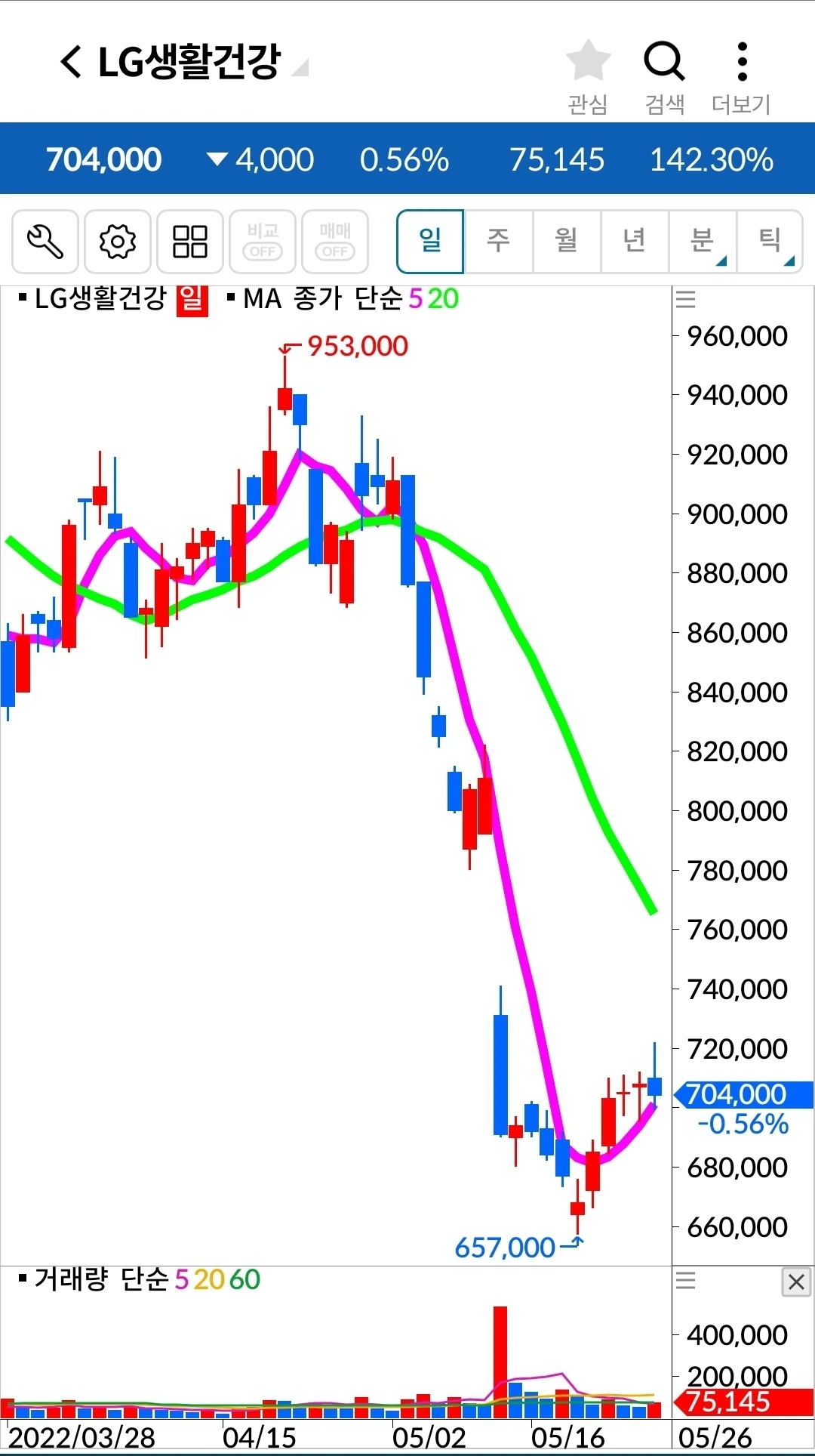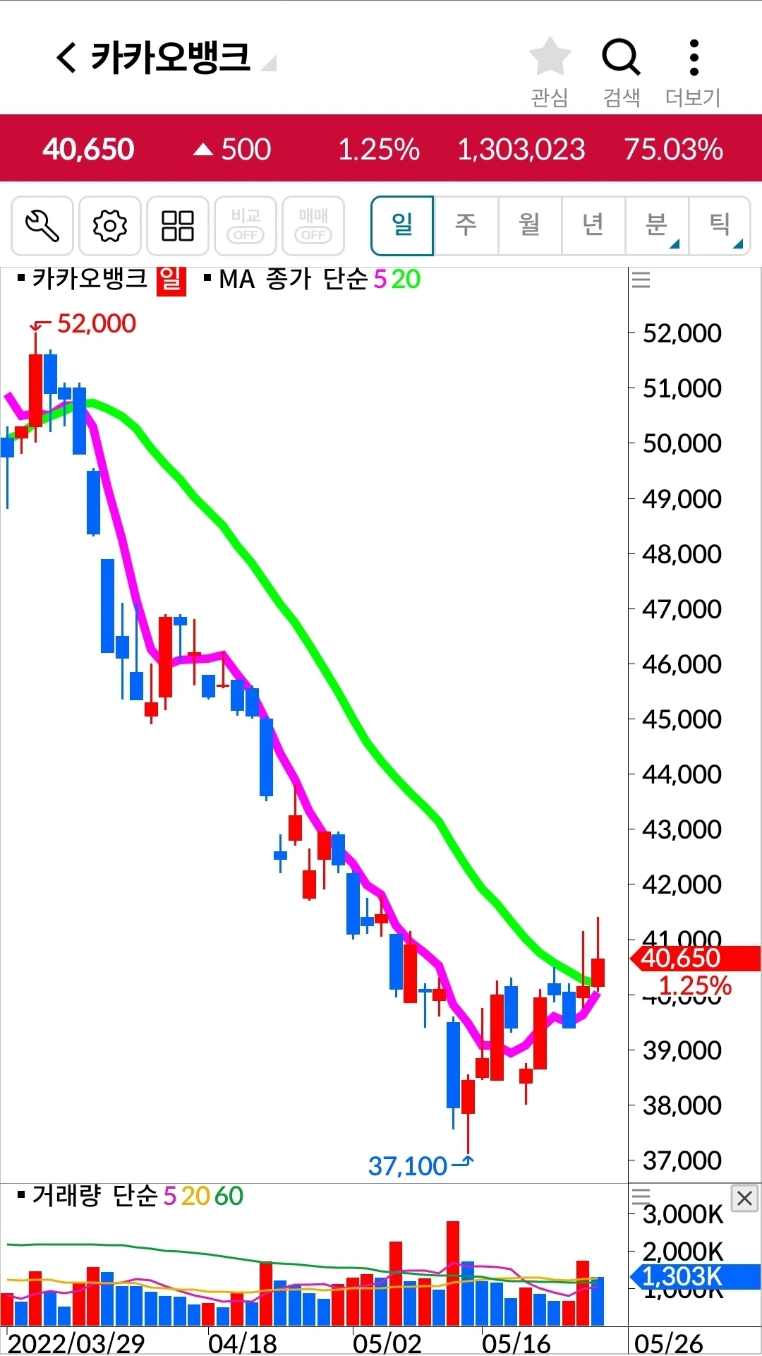 전일 고점을 깨고 올라서는 양봉. 좋아요 좋아~ 하하