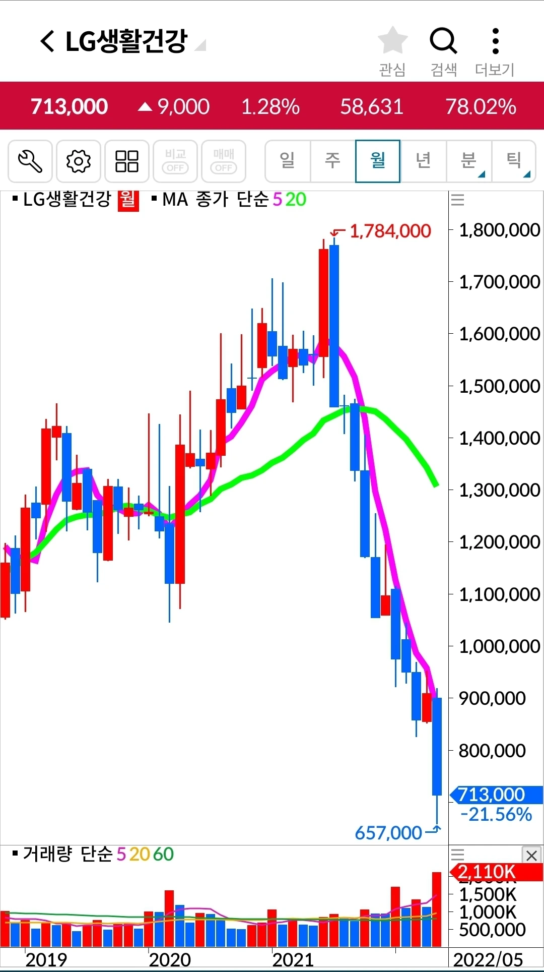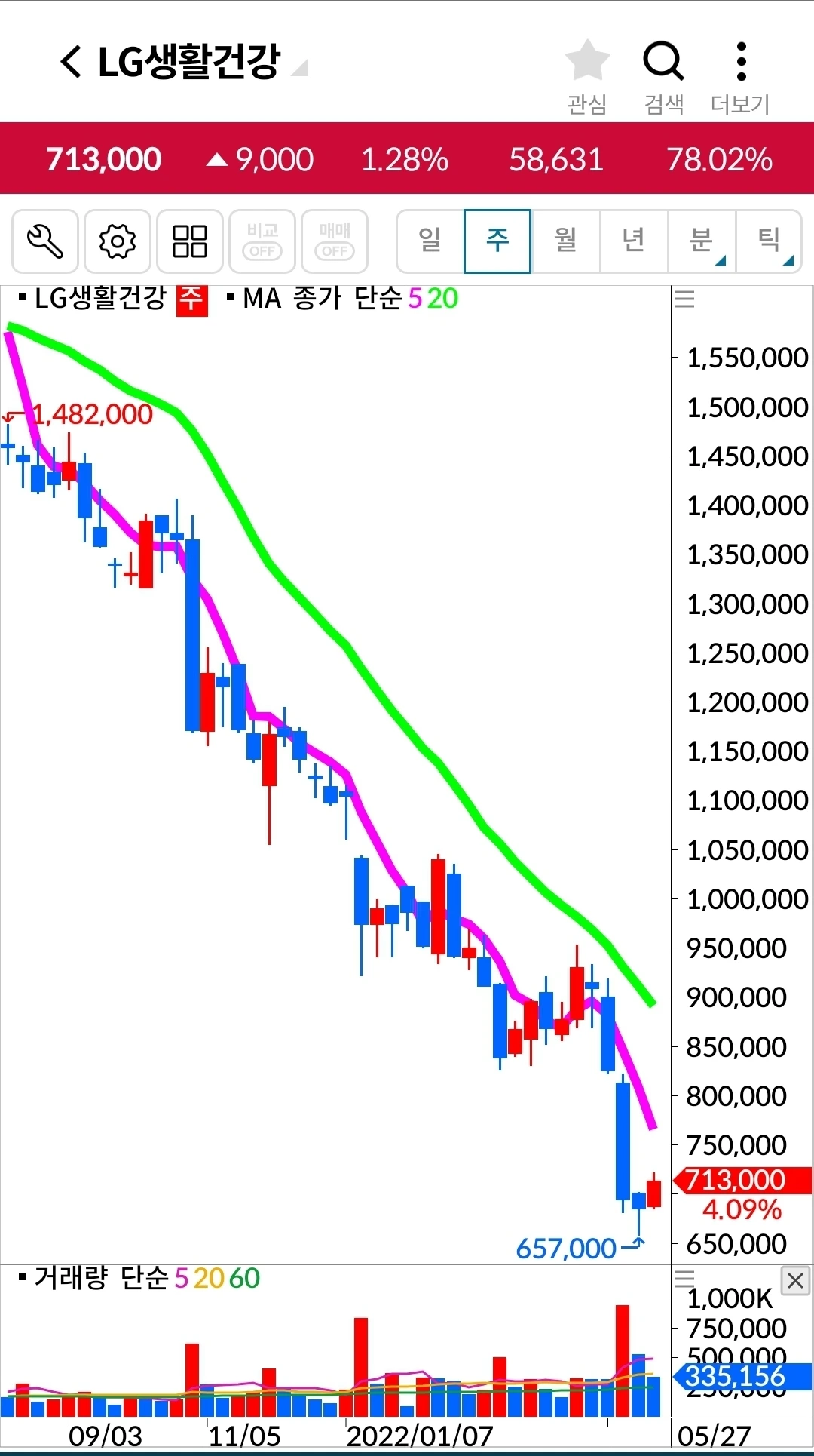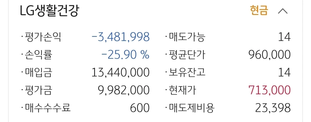 LG생활건강. 348만 원 손실 중.