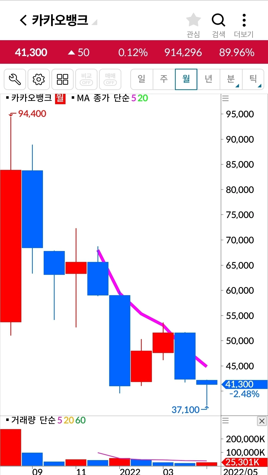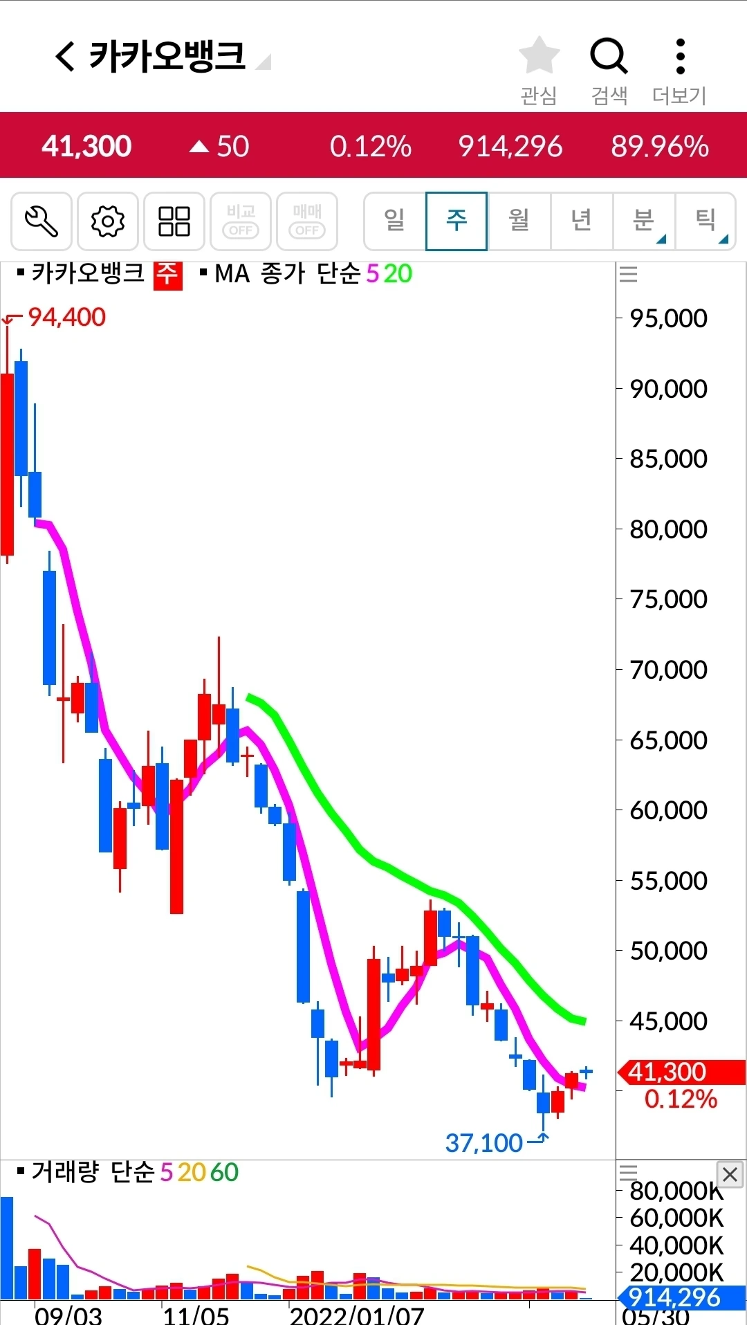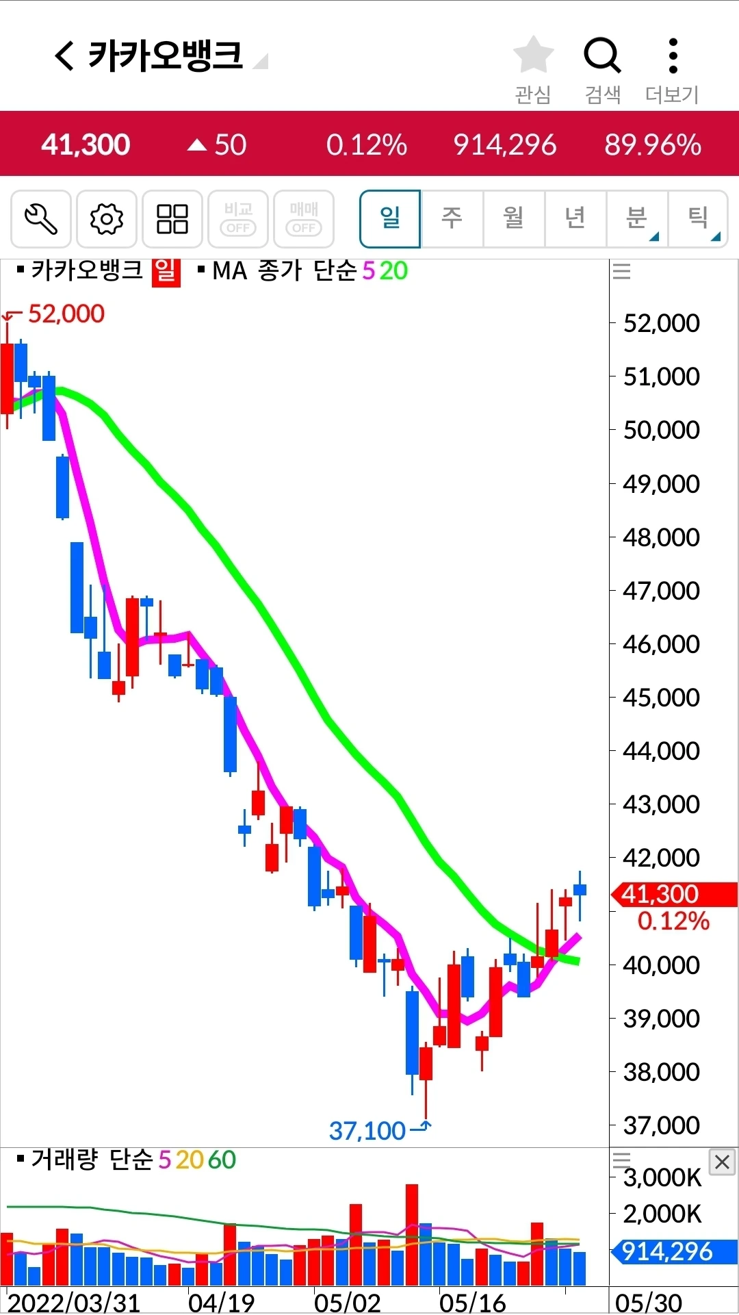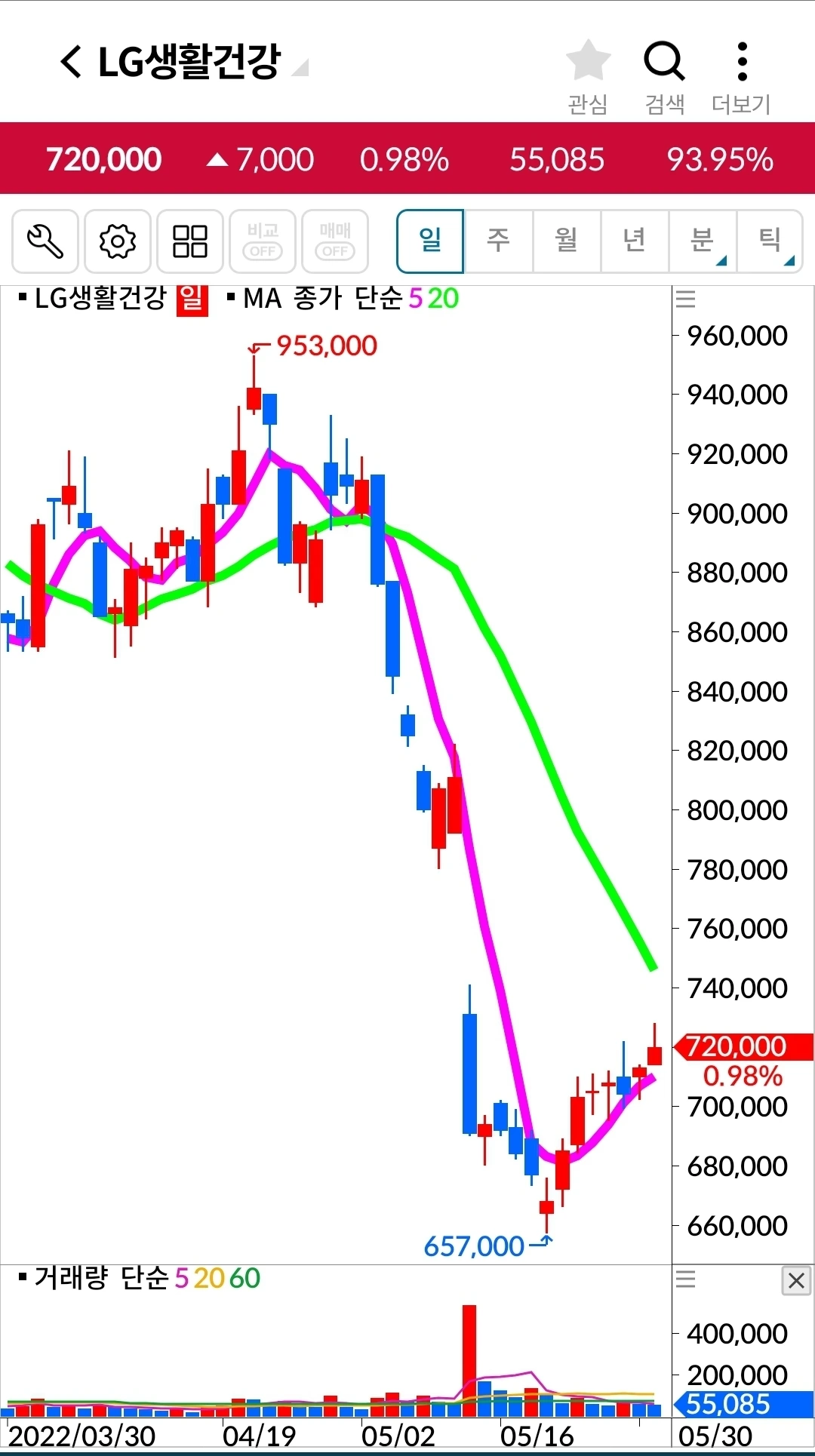 오홋. 5일선이 20일선 위에! 안심!