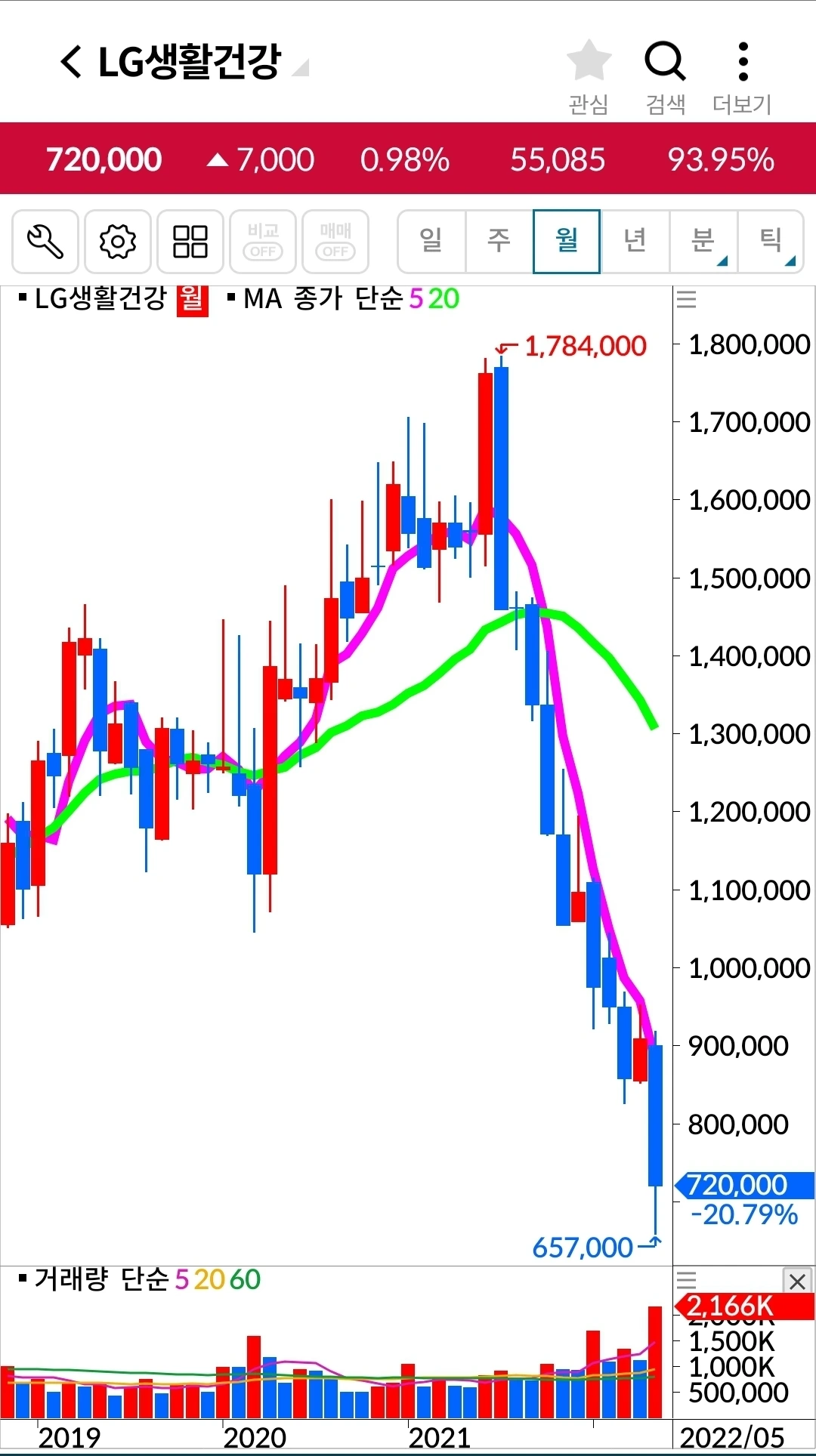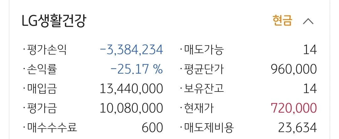 LG생활건강. 338만 원 손실 중.