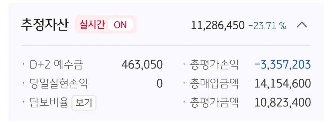 추정자산. 1128만 원. 872만 원 손실 중.