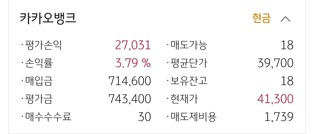 카카오 뱅크. 2만 원 수익 중.
