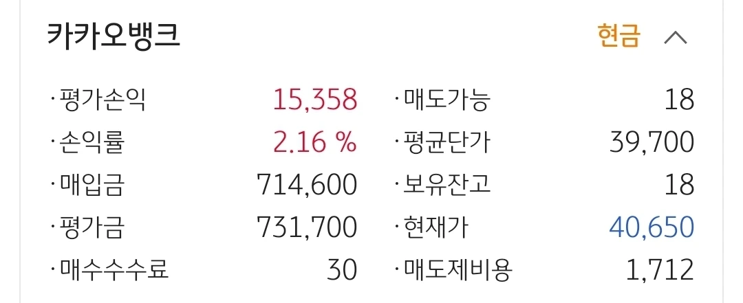 카카오 뱅크. 1만 원 수익 중.