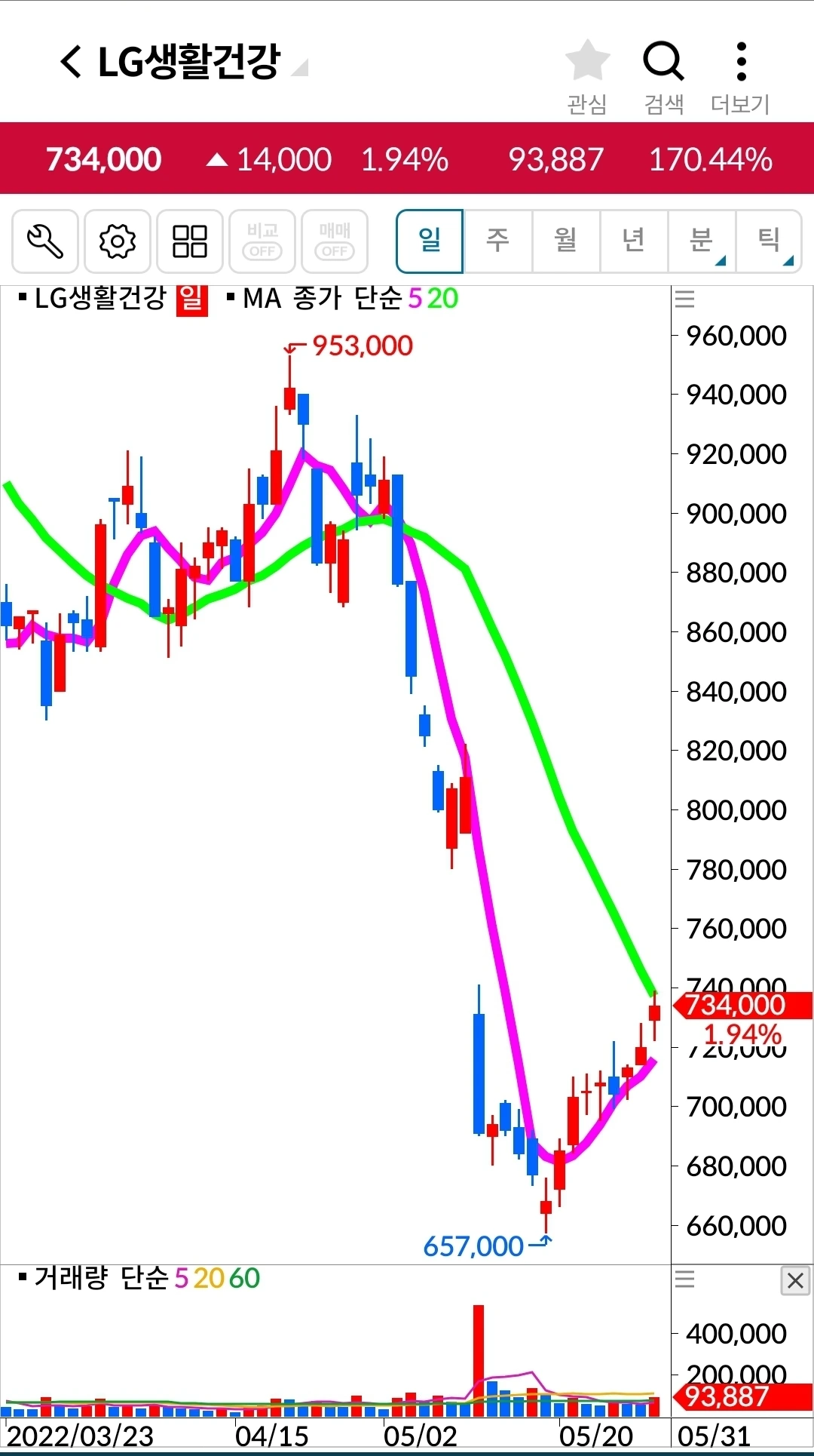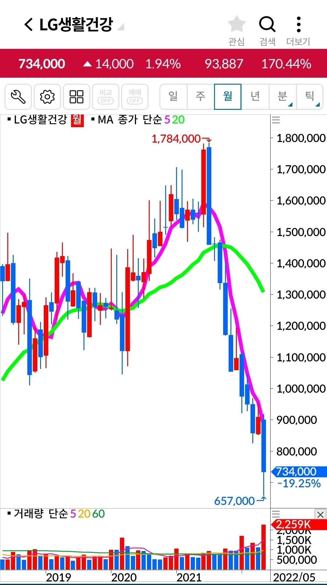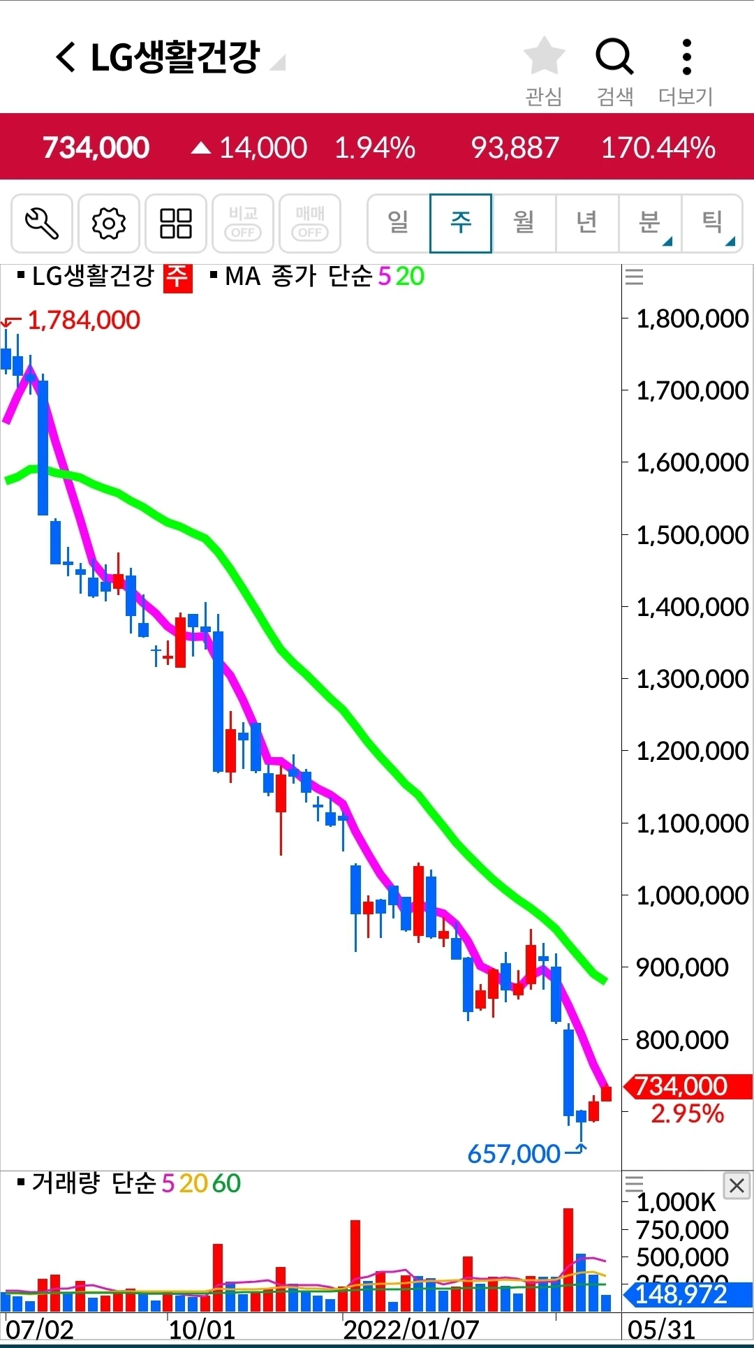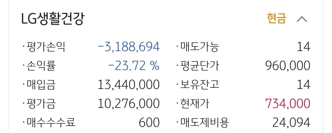 LG생활건강. 318만 원 손실 중.