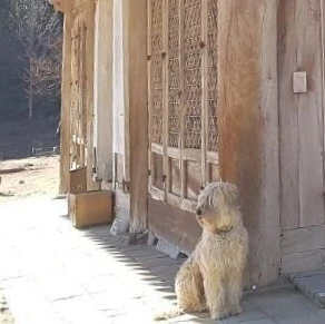 A large dog guarding the old hermitage. A friend tells me it's a Sapsalgae. A friend who owns a dog bravely approaches, pats him, and speaks with kindness. The big dog likes to wag its tail violently. When she leaves, the big dog again settles at the door, as if trying to protect the old hermitage.