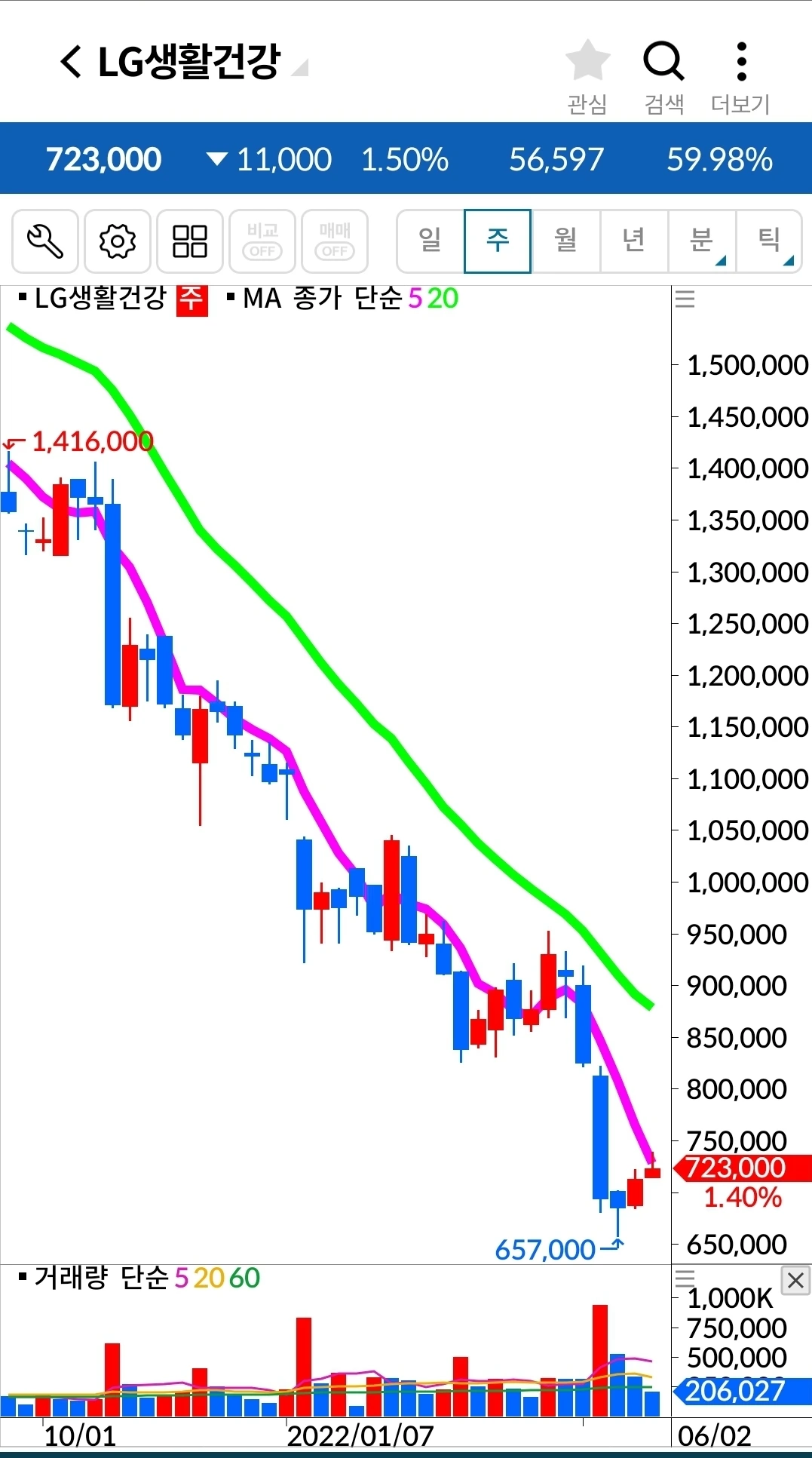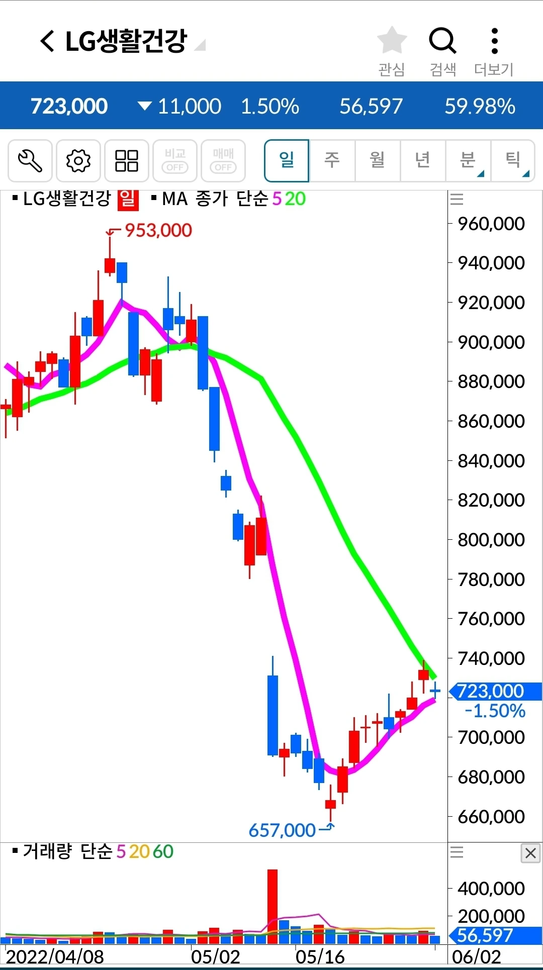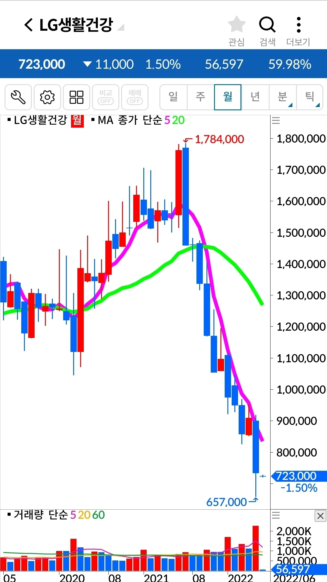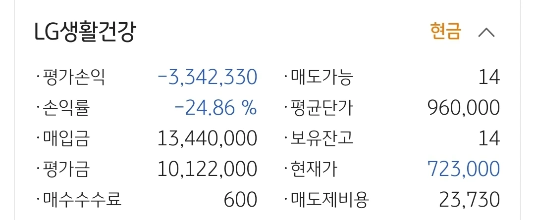 LG생활건강. 334만 원 손실 중.