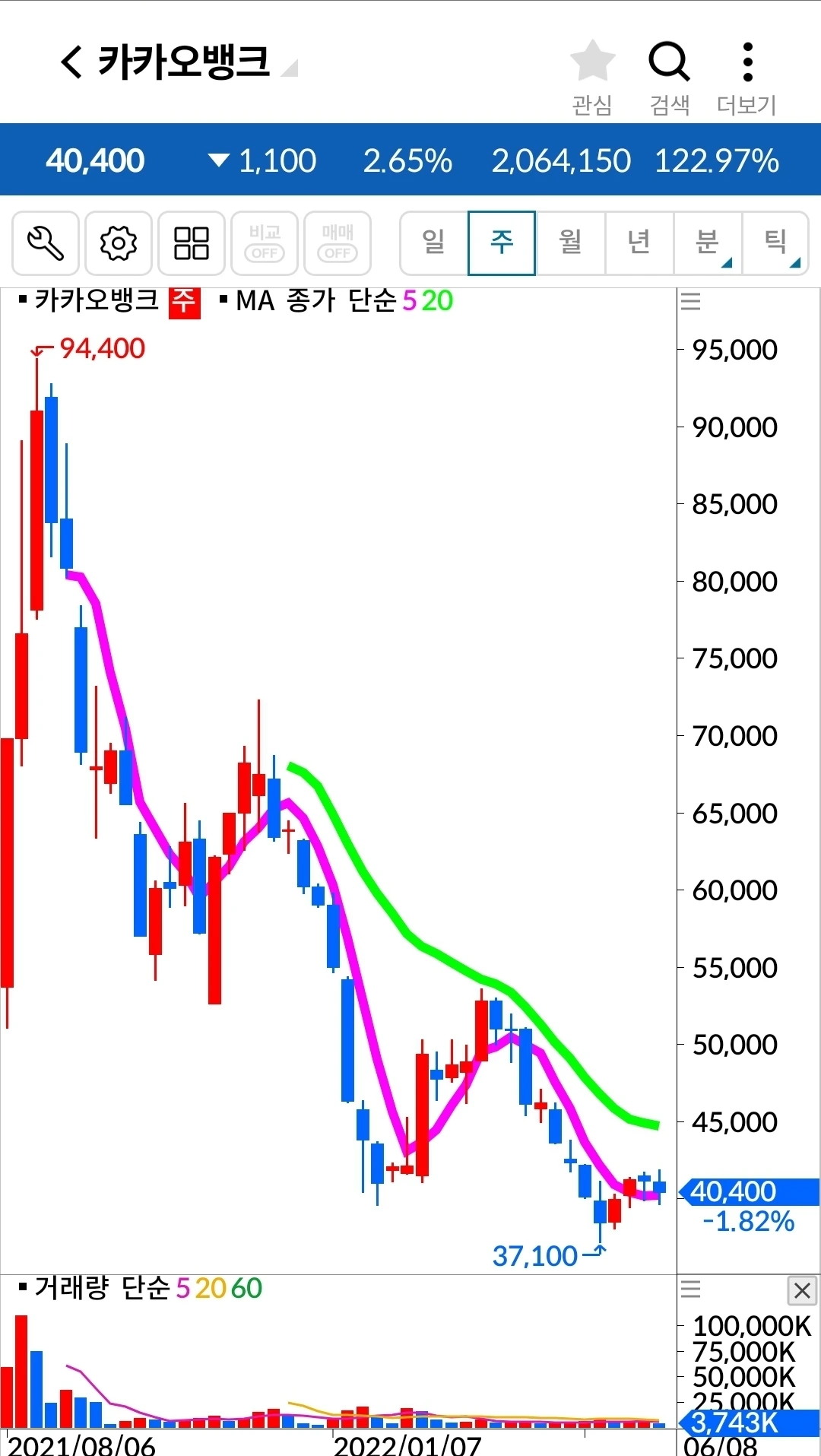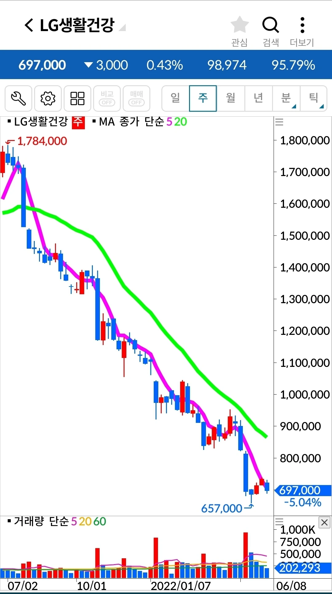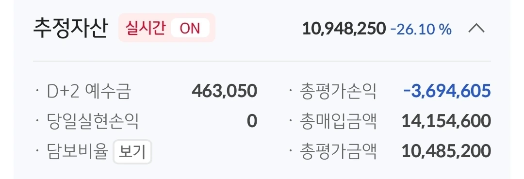 완전 반토막이 나고 있다. 그래도 현금 투자니 그냥 마냥 기다려주리라. 무시무시하다. 나쁜 전략이 어떻게 손실을 가져오는가 실감하고 있다. 이제라도 뛰쳐나와서 수익을 주는 종목으로 갈아타야 하지 않을까? 그런데 그게 영 안된다. 이렇게 많이 떨어졌는데. 조만간 방향을 틀 텐데. 하는 생각이 너무 강하기 때문이다. 잘못된 접근이었지만 시간을 두고 기다려보련다. 끝을 보자. 파이팅. 하하 맨날 파이팅만 외친다. 바보. 푸하하하